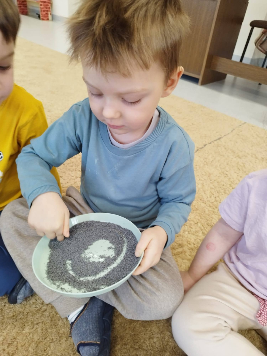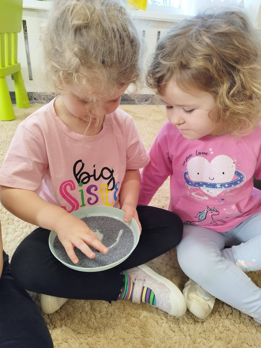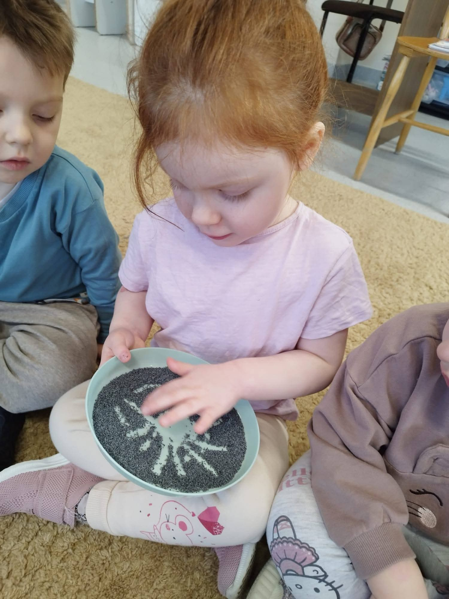 Zadania te angażowały jednocześnie zmysł dotyku i wzroku, wspierały rozwój motoryki małej, koordynacji wzrokowo-ruchowej, a także sprzyjały kreatywności i samodzielności dzieci.