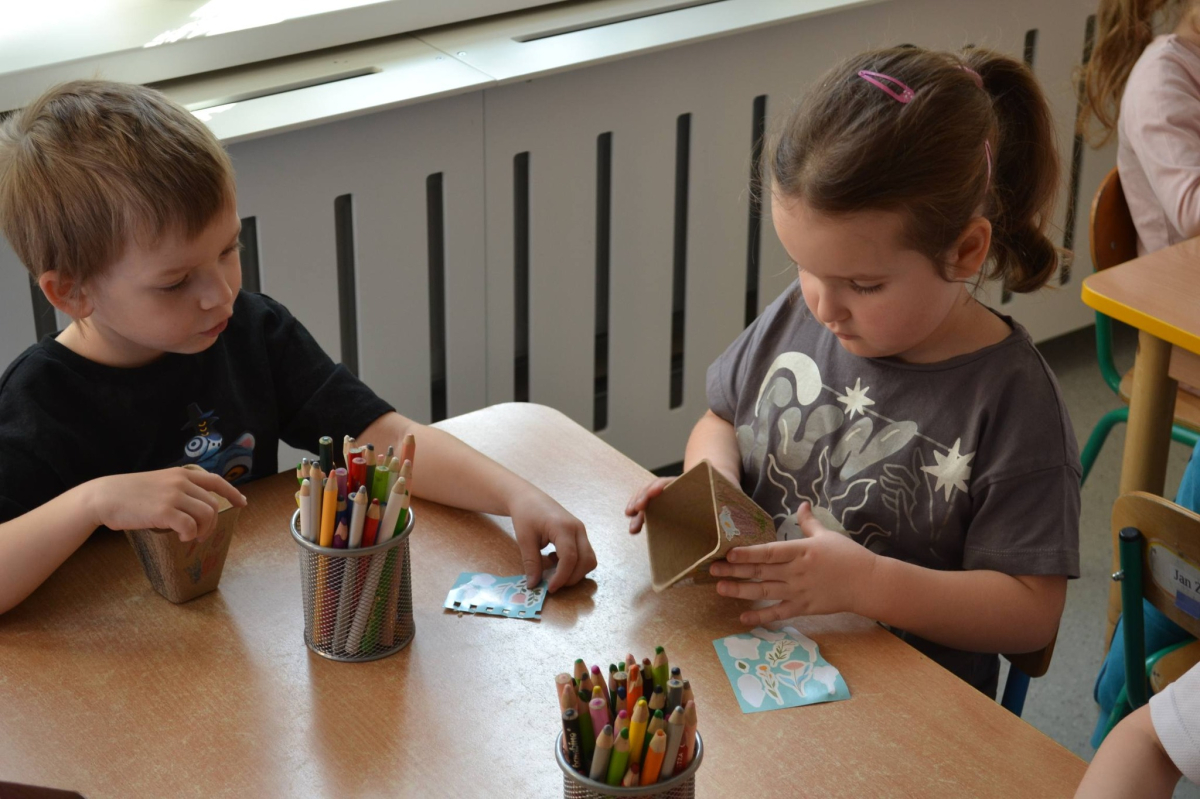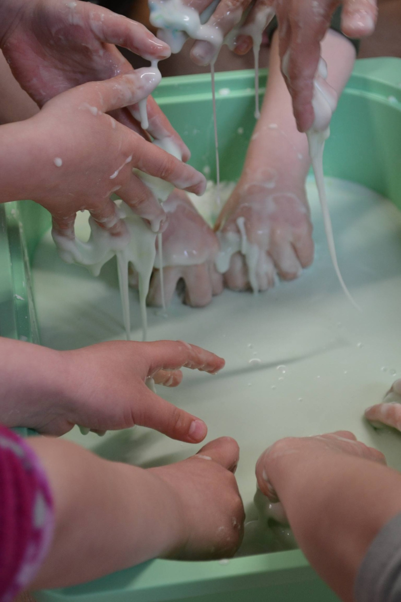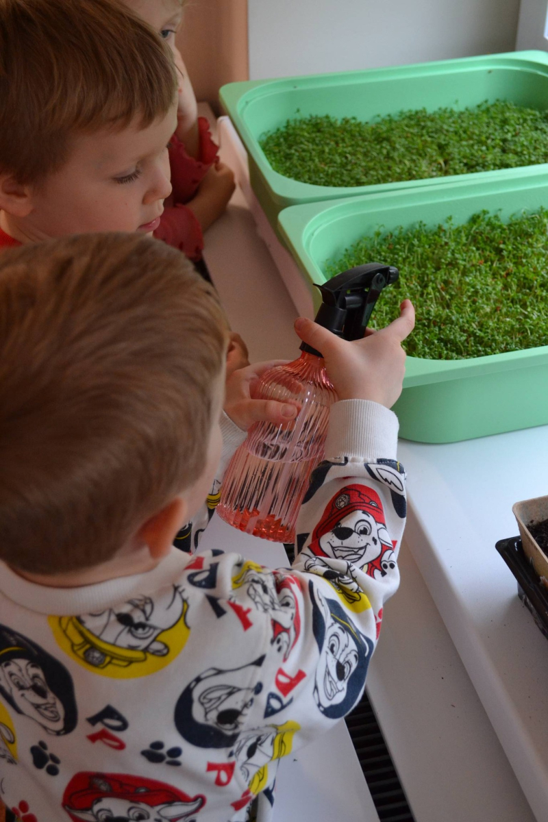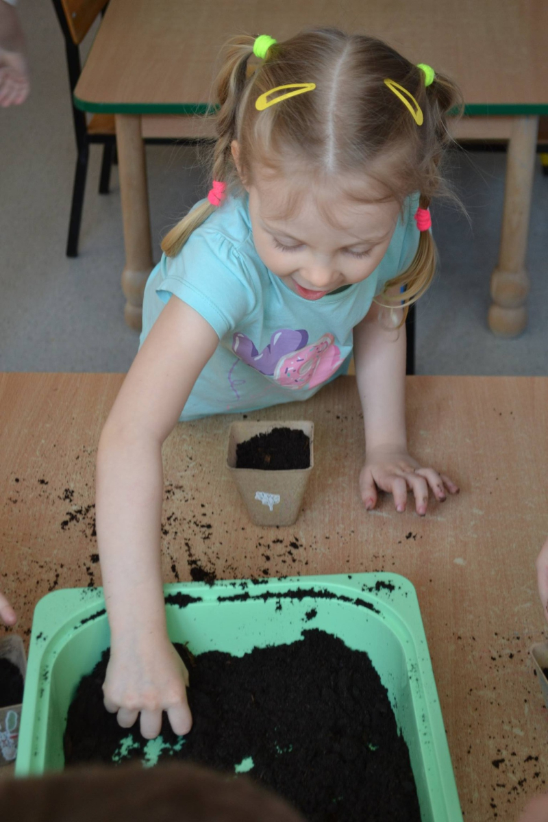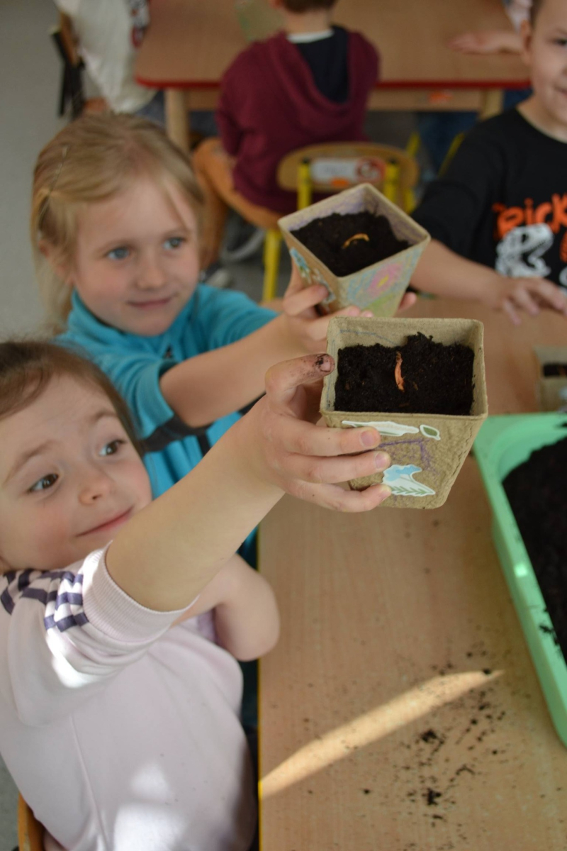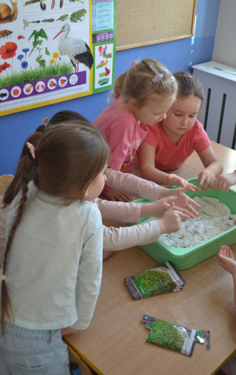 Dzień Świętego Patryka w grupie Muchomorki. W naszej grupie zrobiło się dziś zielono i bardzo magicznie! Dzieci poznały tradycje związane z Dniem Świętego Patryka oraz jego symbole. Wysłuchały także irlandzkiej legendy o sprytnym Leprechaunie i ukrytym garnku złota, która rozbudziła ich wyobraźnię i ciekawość świata. W ramach realizacji innowacji pedagogicznej „Sensoryczne Przygody Malucha” przygotowaliśmy wyjątkową zabawę - zieloną ciecz nienewtonowską. Było to niezwykłe doświadczenie sensoryczne, które angażowało zmysł dotyku, wzroku oraz propriocepcji. Dzieci mogły obserwować, jak ciecz zmienia swoją konsystencję - raz była płynna, a po chwili stawała się twarda pod naciskiem dłoni. To nie tylko świetna zabawa, ale także doskonałe ćwiczenie motoryki małej oraz koordynacji wzrokowo-ruchowej. Nie zabrakło również działań plastycznych - dzieci z ogromnym zaangażowaniem wykonały kolorowe kapelusze Leprechauna. W ostatnim czasie zajmowaliśmy się także zakładaniem hodowli cebuli i rzeżuchy. Dzieci codziennie troskliwie doglądały swoich roślinek, podlewały je i obserwowały ich wzrost. Po tygodniu mogły spróbować, jak smakuje świeża rzeżucha .Była to dla nich cenna lekcja przyrody i zdrowego odżywiania. Dodatkowo samodzielnie ozdobiły doniczki, rozwijając swoją kreatywnoś