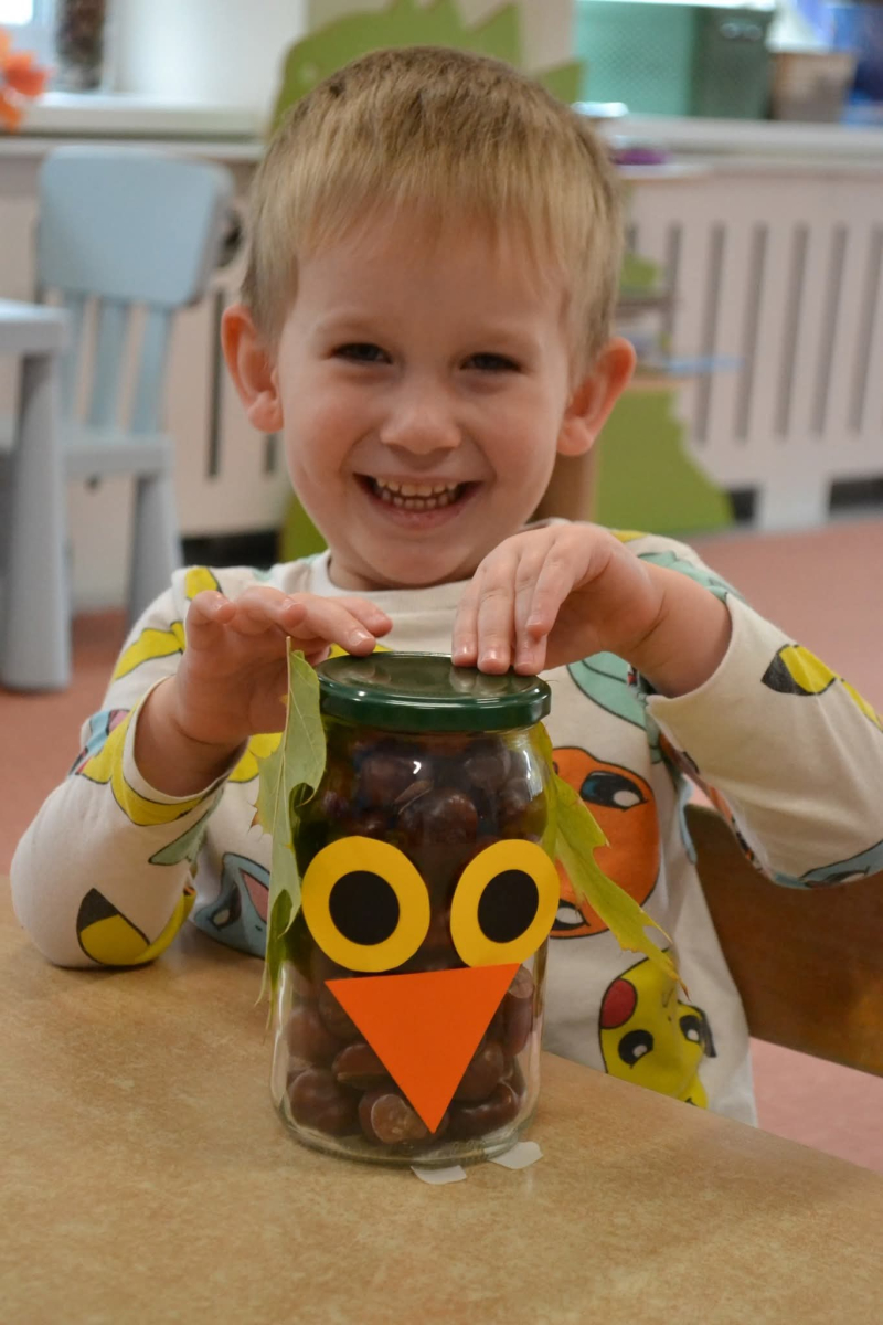- wykonały pracę plastyczną – „Sowy w słoiku”, wykorzystując do tego naturalne elementy,