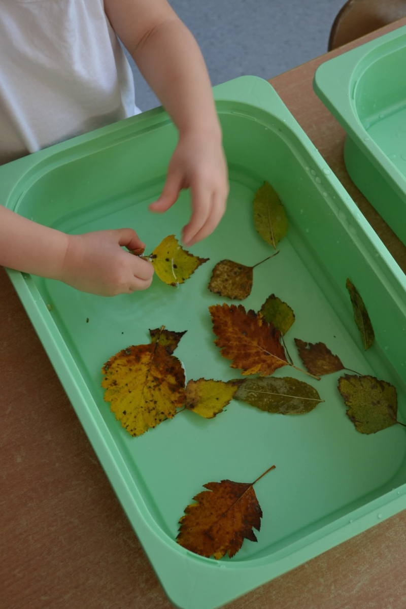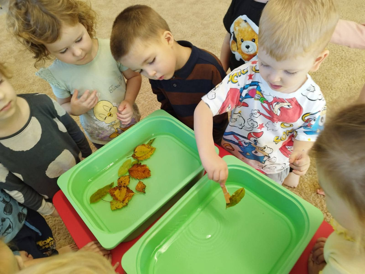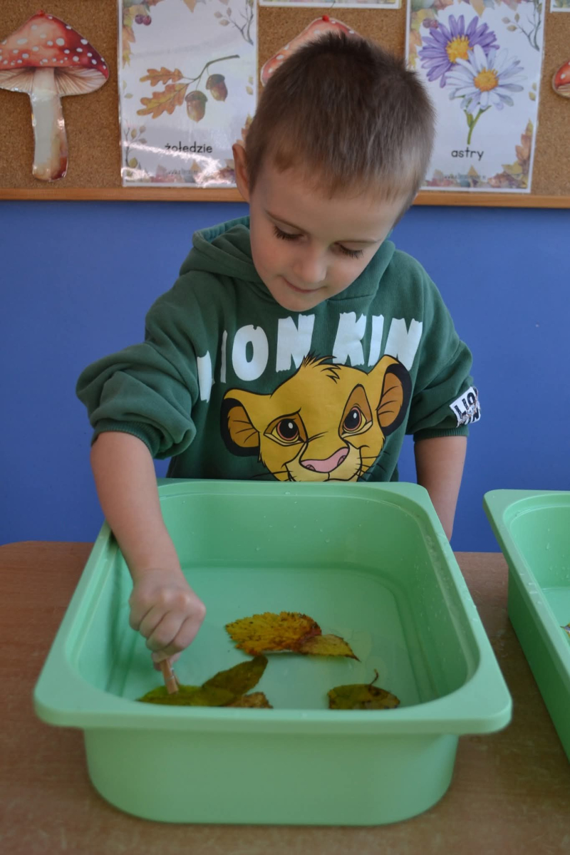 - ćwiczyły motorykę małą, chwytając listki zanurzone w wodzie za pomocą spinaczy,