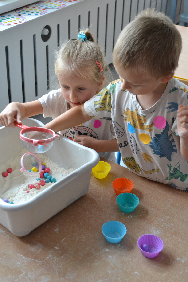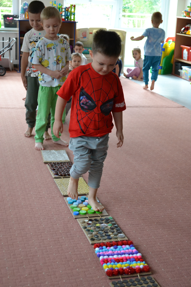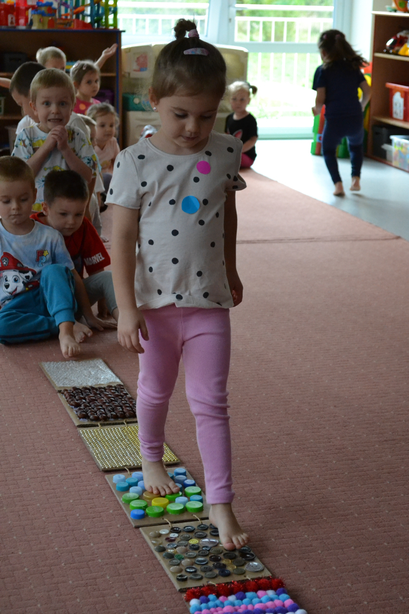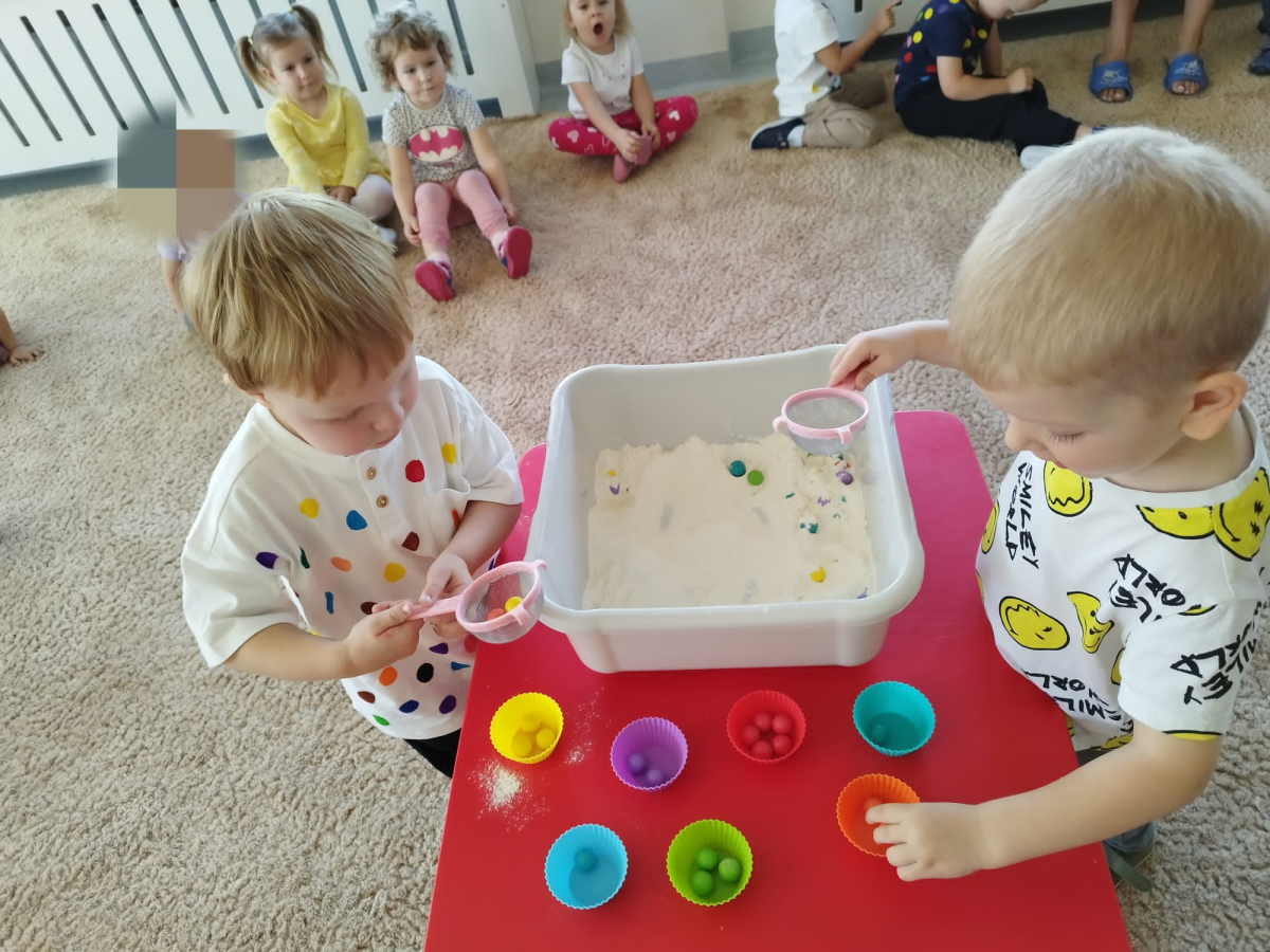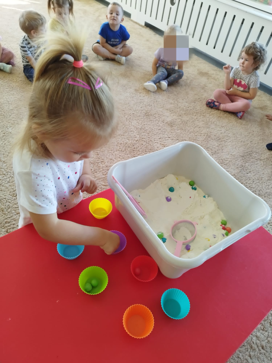W ramach innowacji zrealizowaliśmy wyjątkowy dzień tematyczny - „Sensoryczny Dzień Kropki”. Dzieci miały okazję pokonać kropkową ścieżkę sensoryczną, bawić się fakturą mąki, tworzyć barwne, kropkowe prace plastyczne, a także uczestniczyć w wesołych zabawach ruchowych inspirowanych motywem kropki.