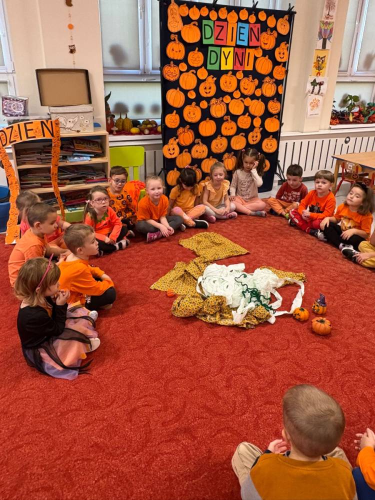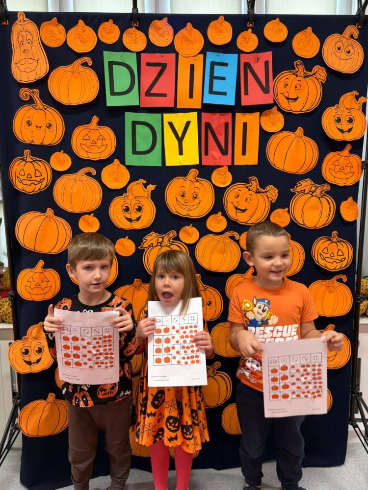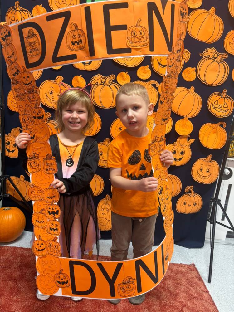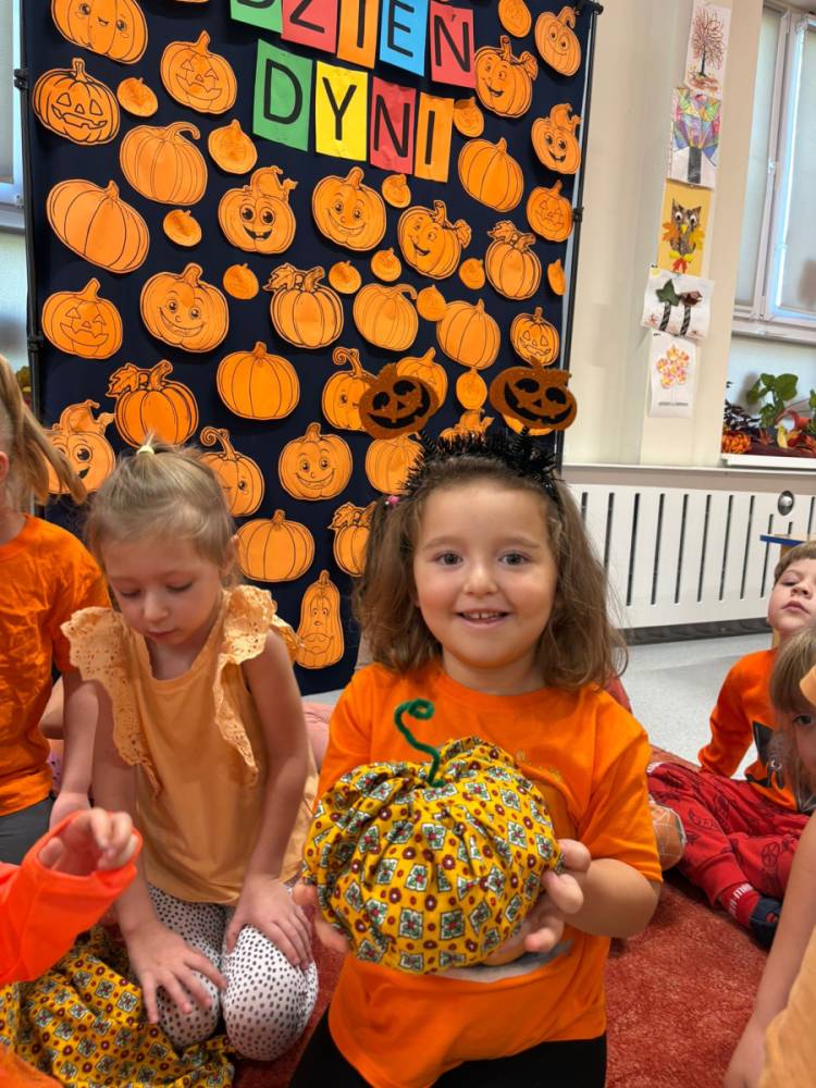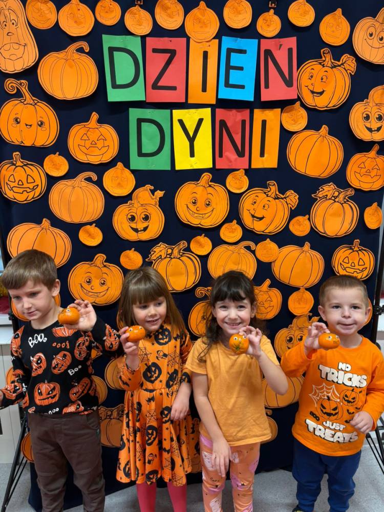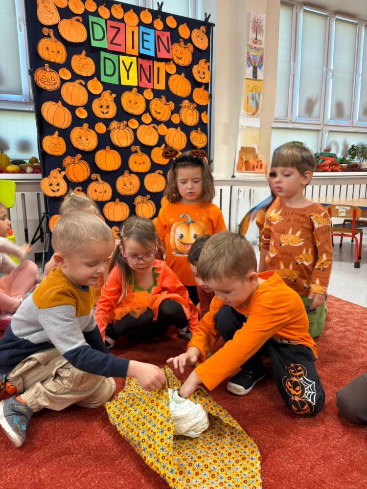 Dzieci uczestniczą w zabawach z okazji Dnia Dyni .