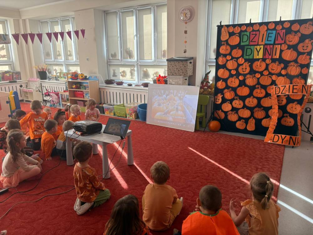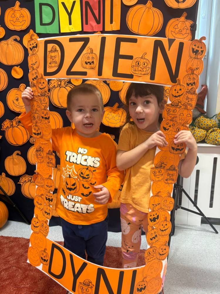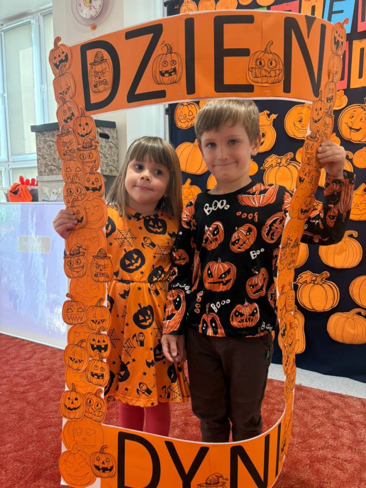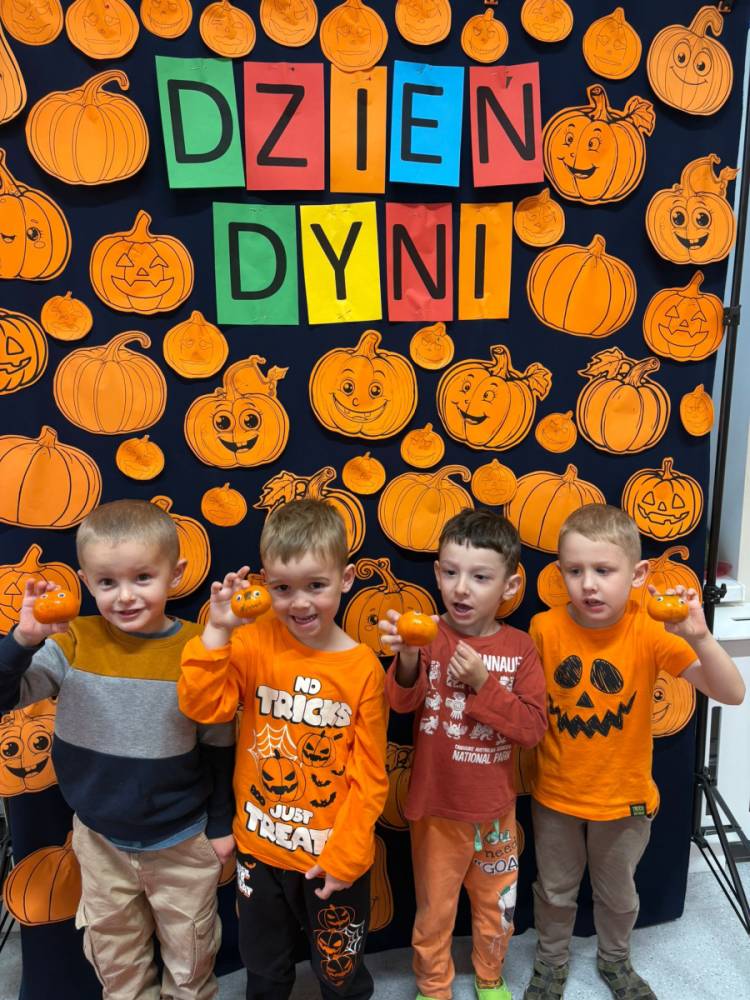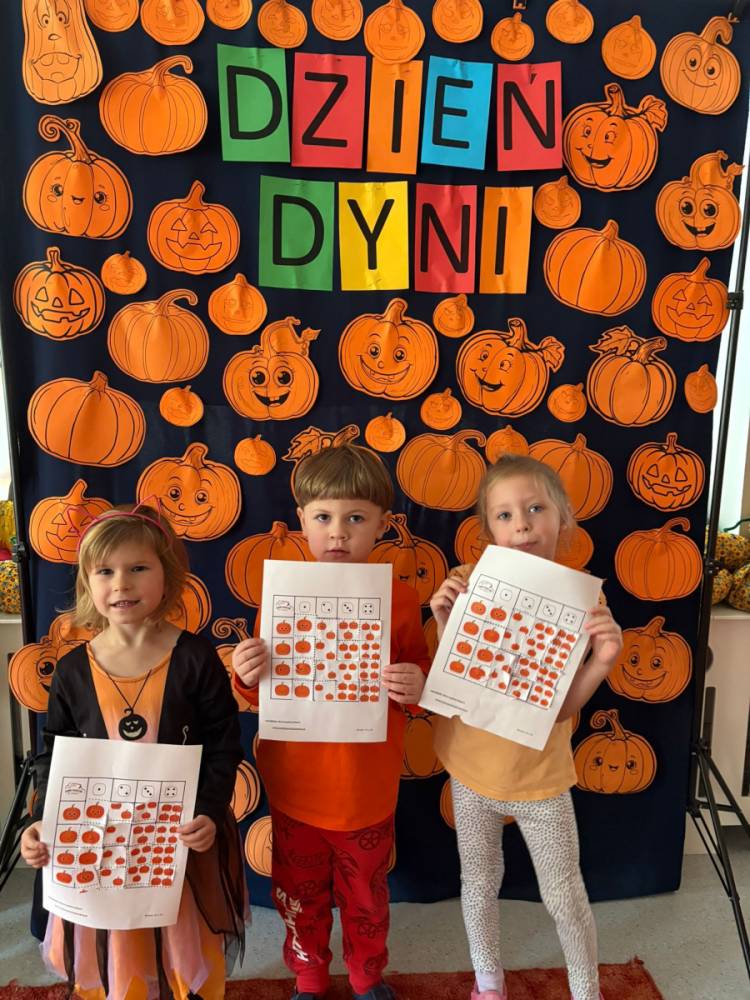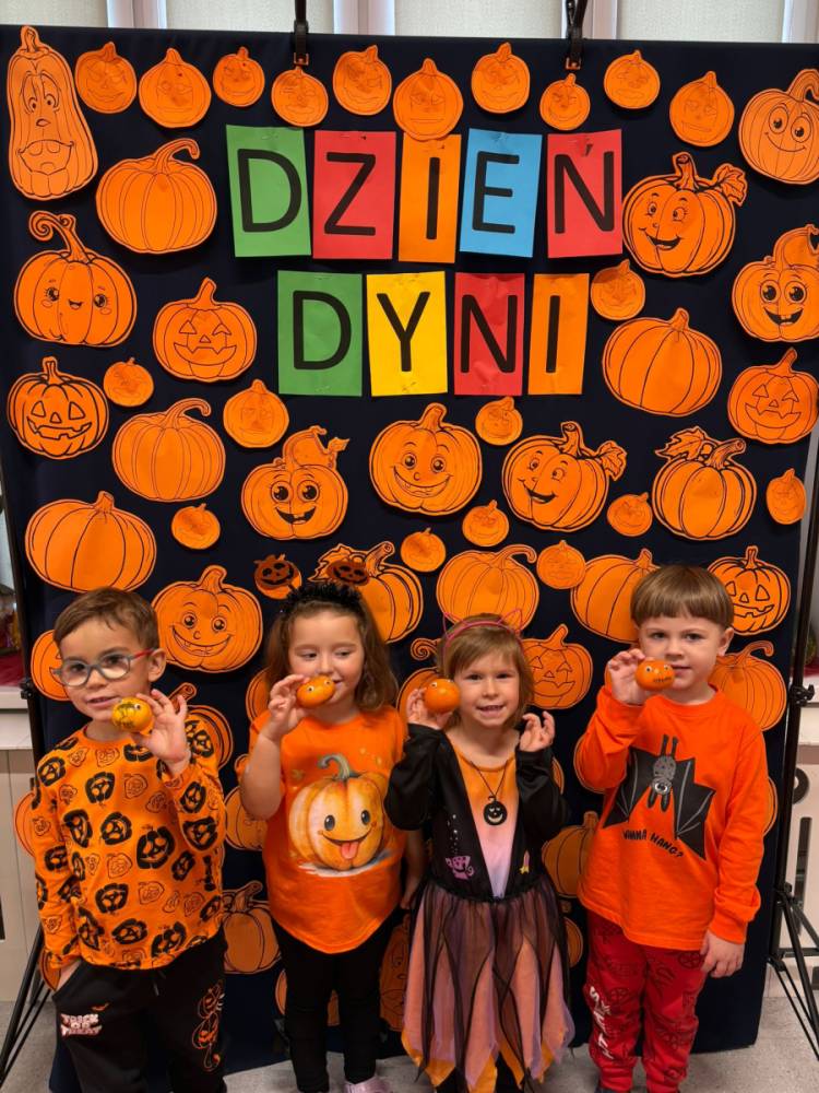 Dzieci uczestniczą w zabawach z okazji Dnia Dyni .