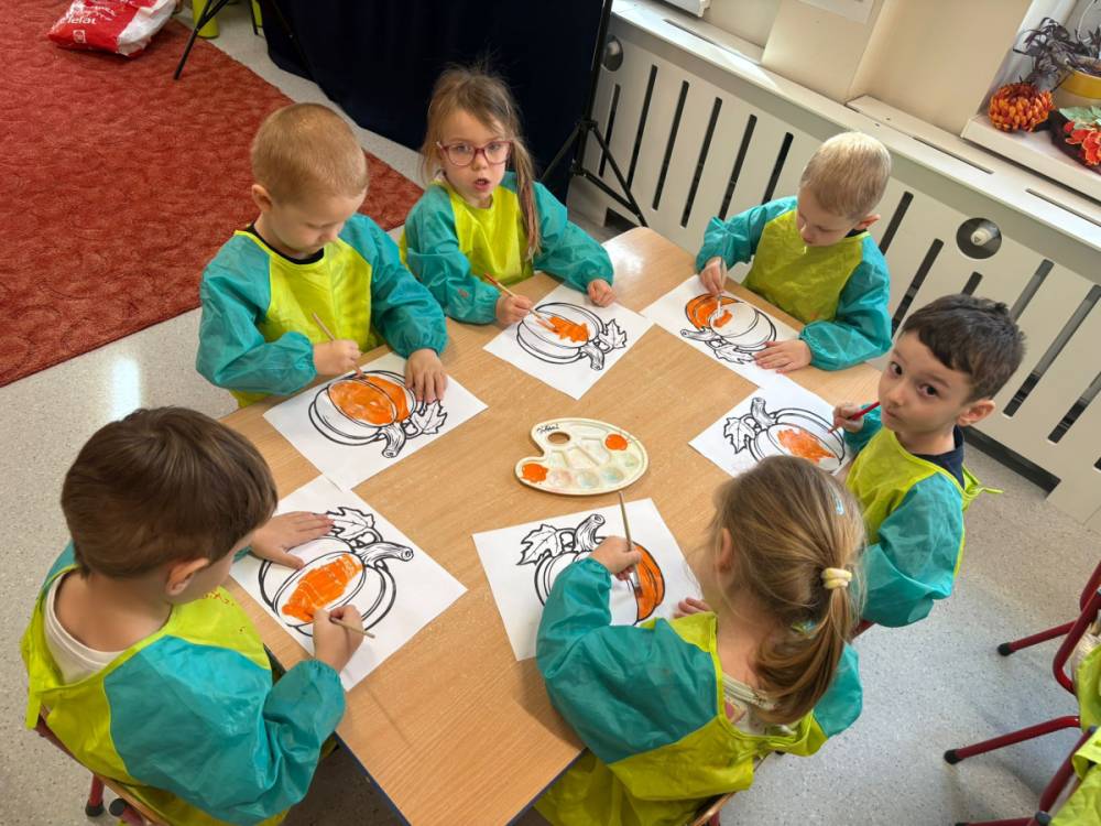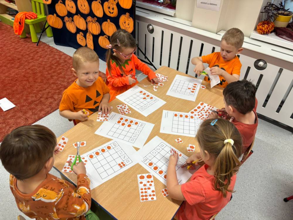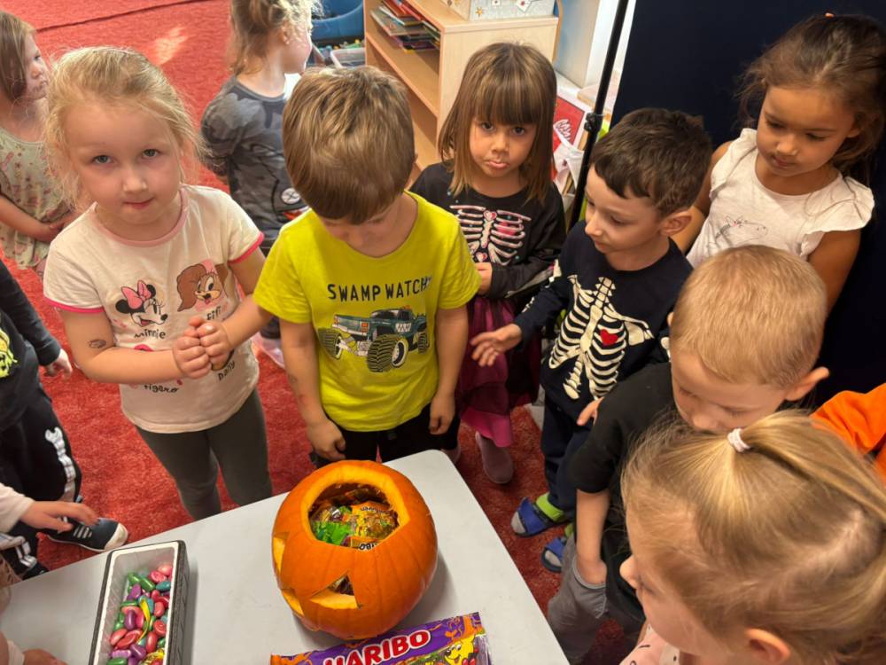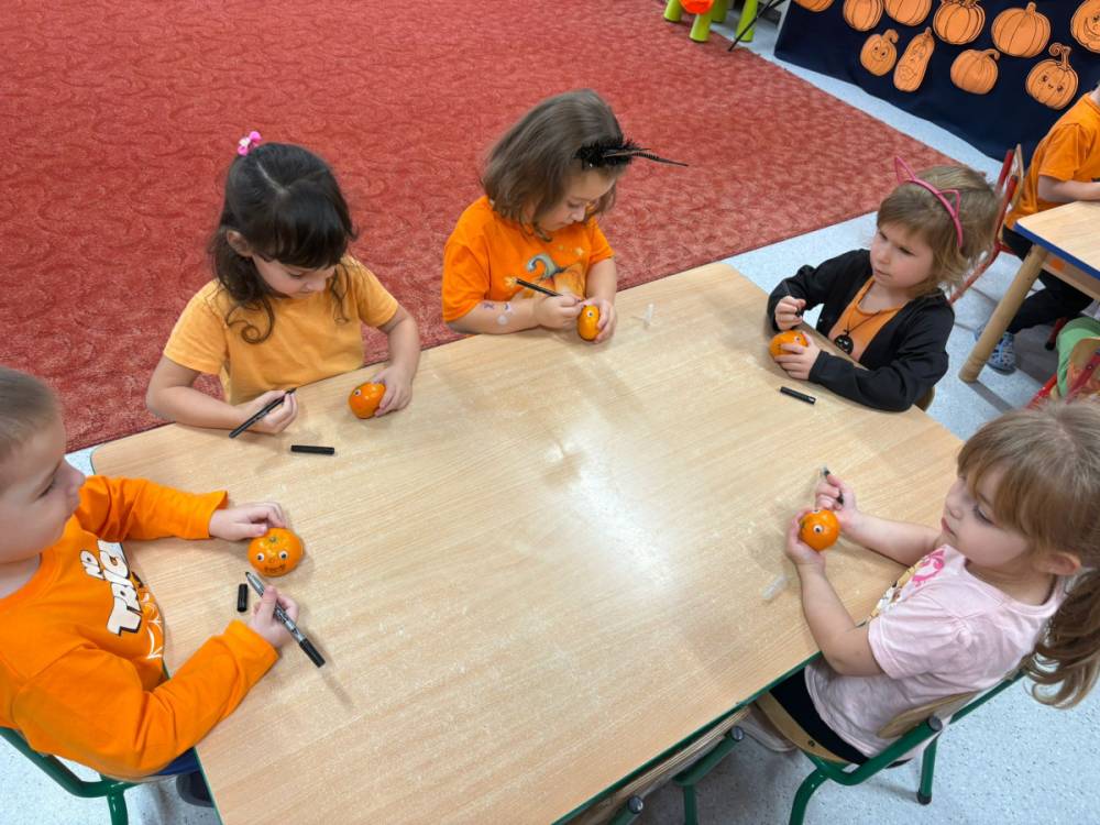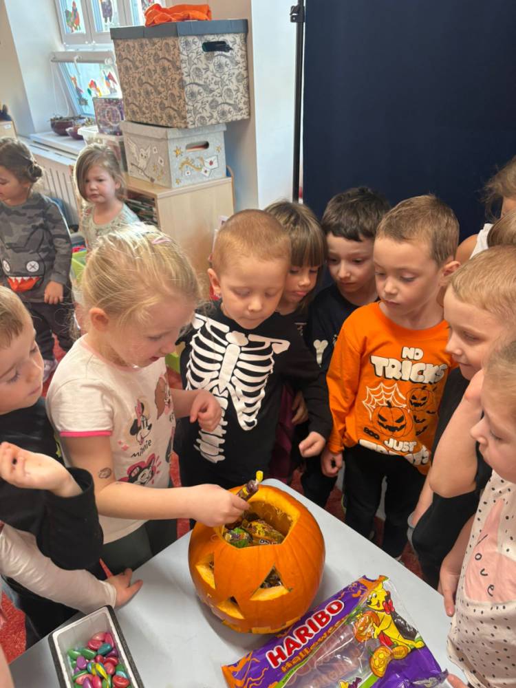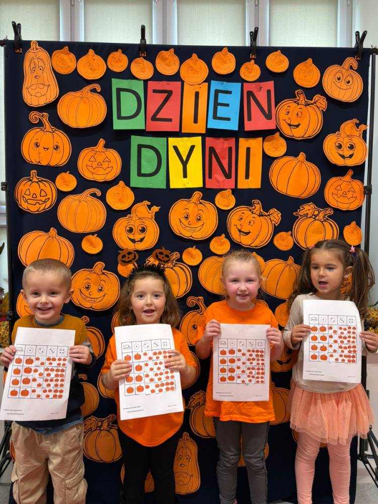 Dzieci uczestniczą w zabawach z okazji Dnia Dyni .