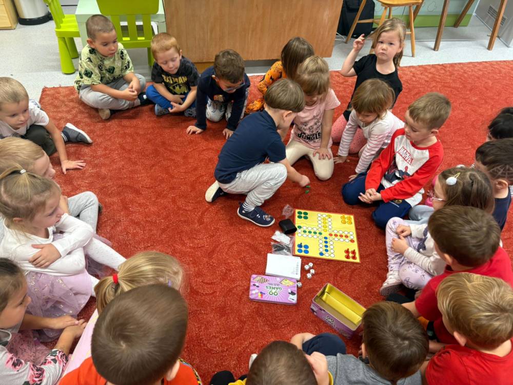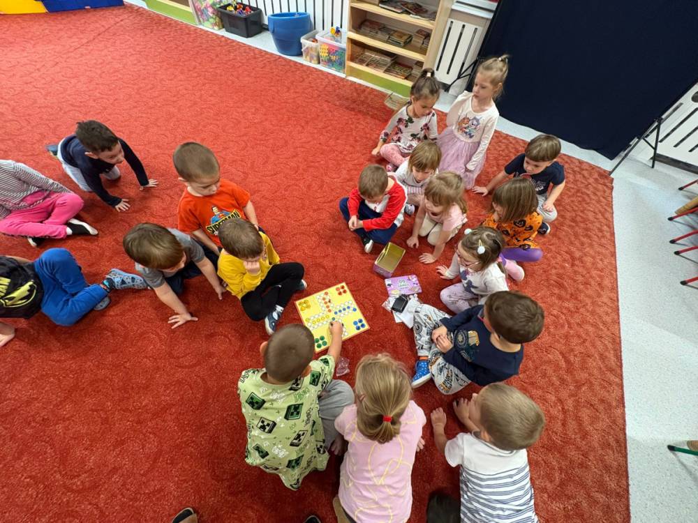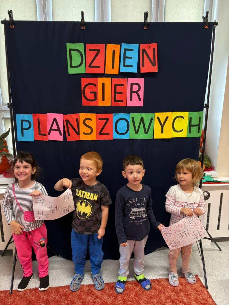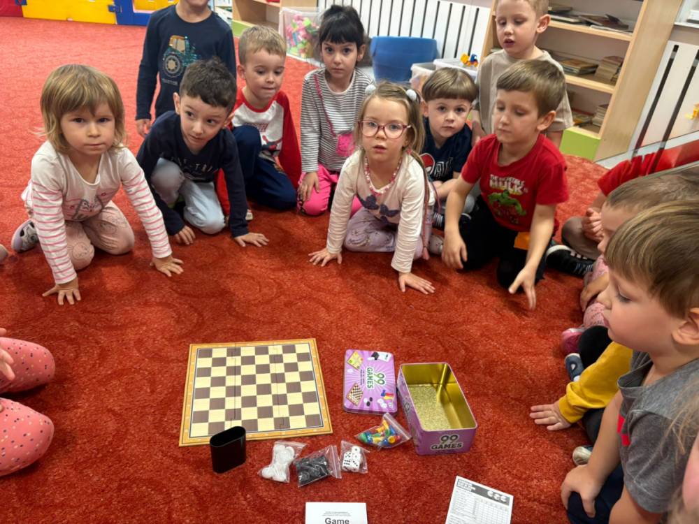 Przedszkolaki świętują Dzień Gier Planszowych.