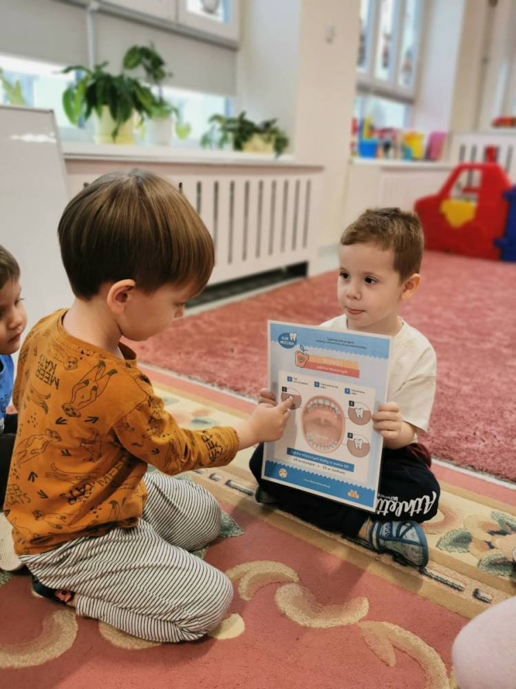 Dzieci poznają zasady prawidłowej higieny jamy ustnej.