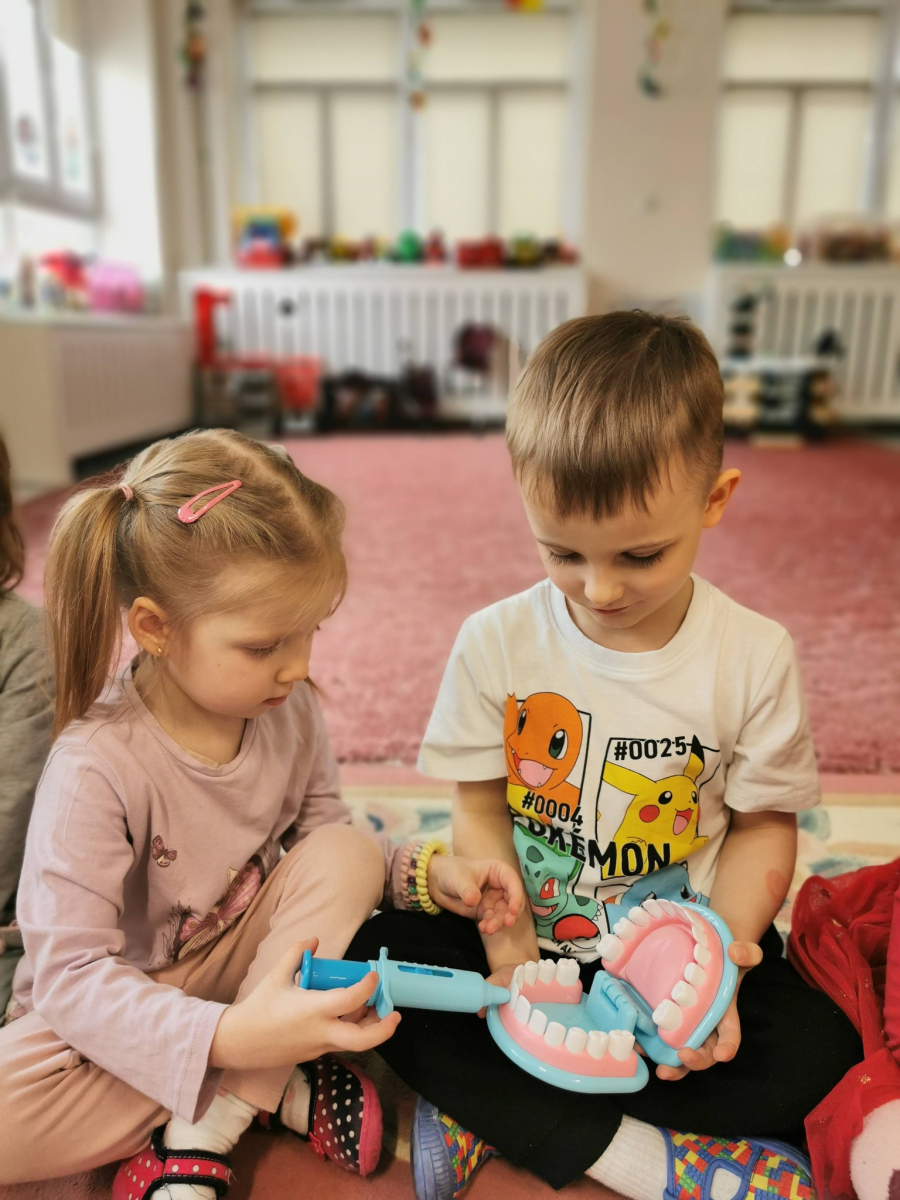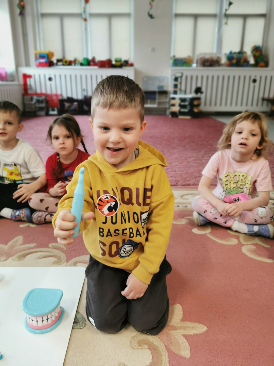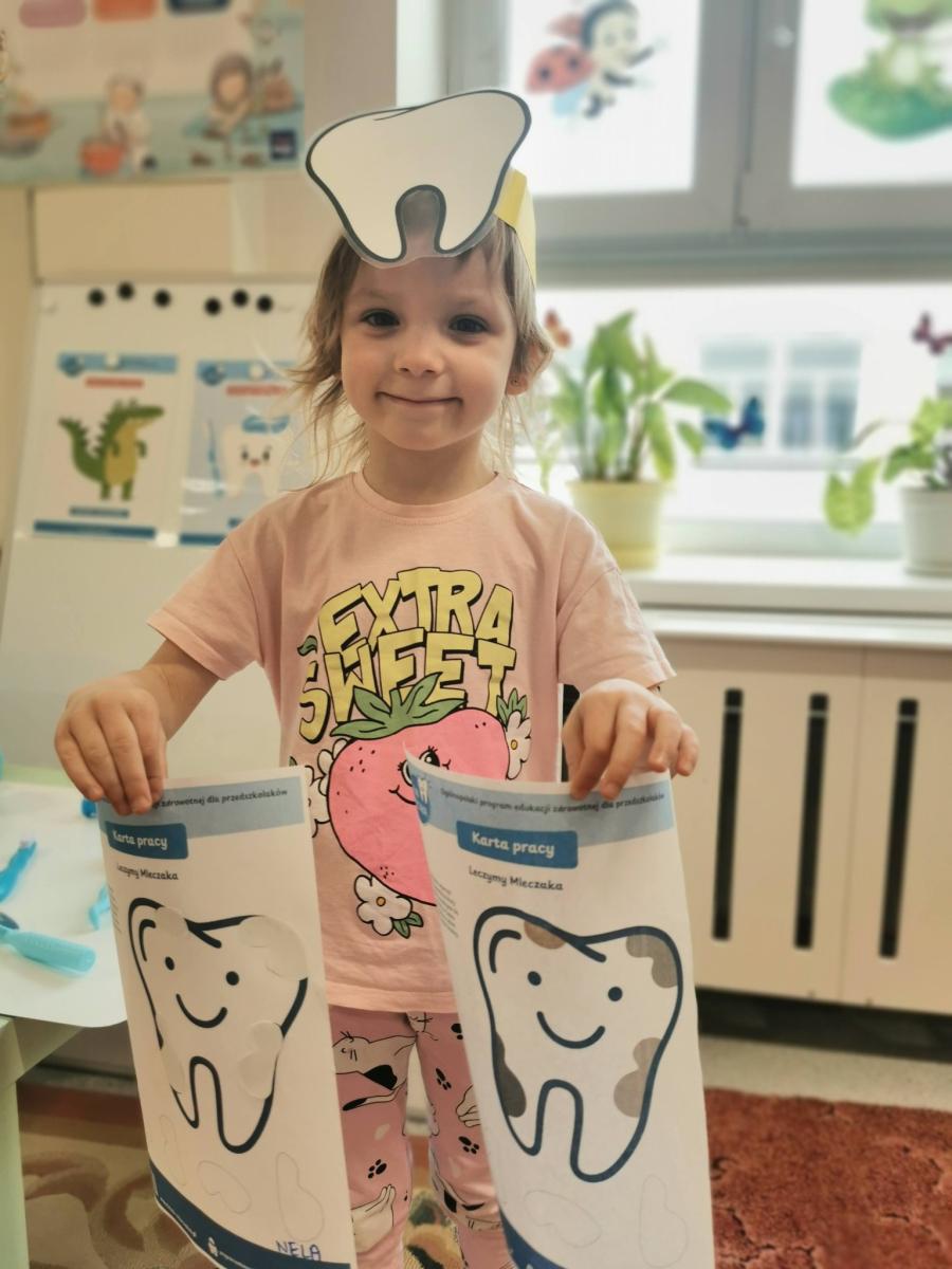 "Walczymy z Gangiem Próchnicy" - zajęcia w ramach Ogólnopolskiego programu edukacji zdrowotnej Klub Mleczaka. Tym razem dzieci z grupy "Skrzaty" wspólnie odkrywały, jak ważne jest właściwe dbanie o zęby oraz dlaczego nie należy bać się wizyty u dentysty. Nie zabrakło zdobywania nowej sprawności: Pogromcy Gangu Próchnicy!