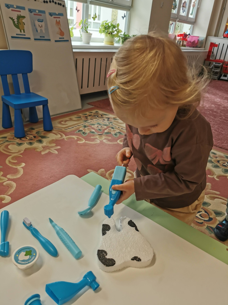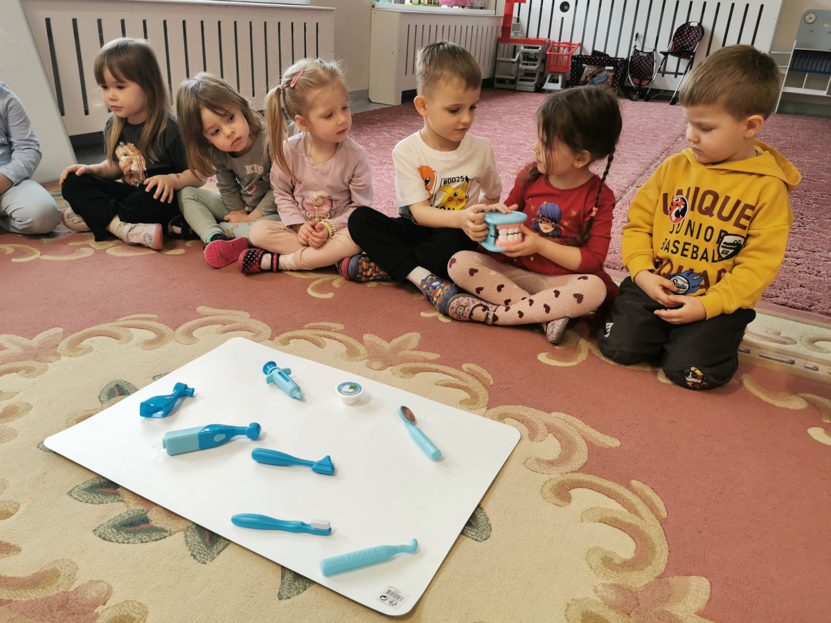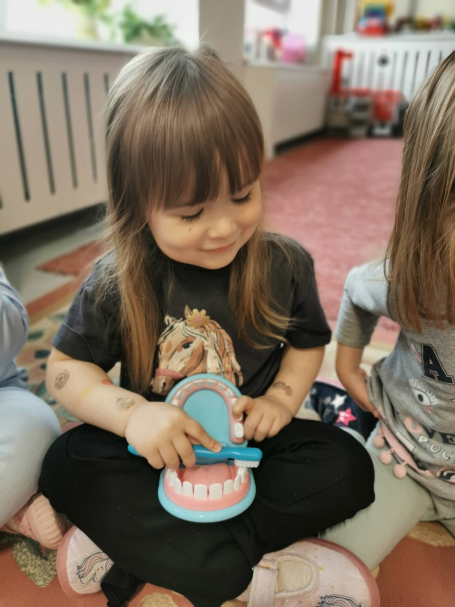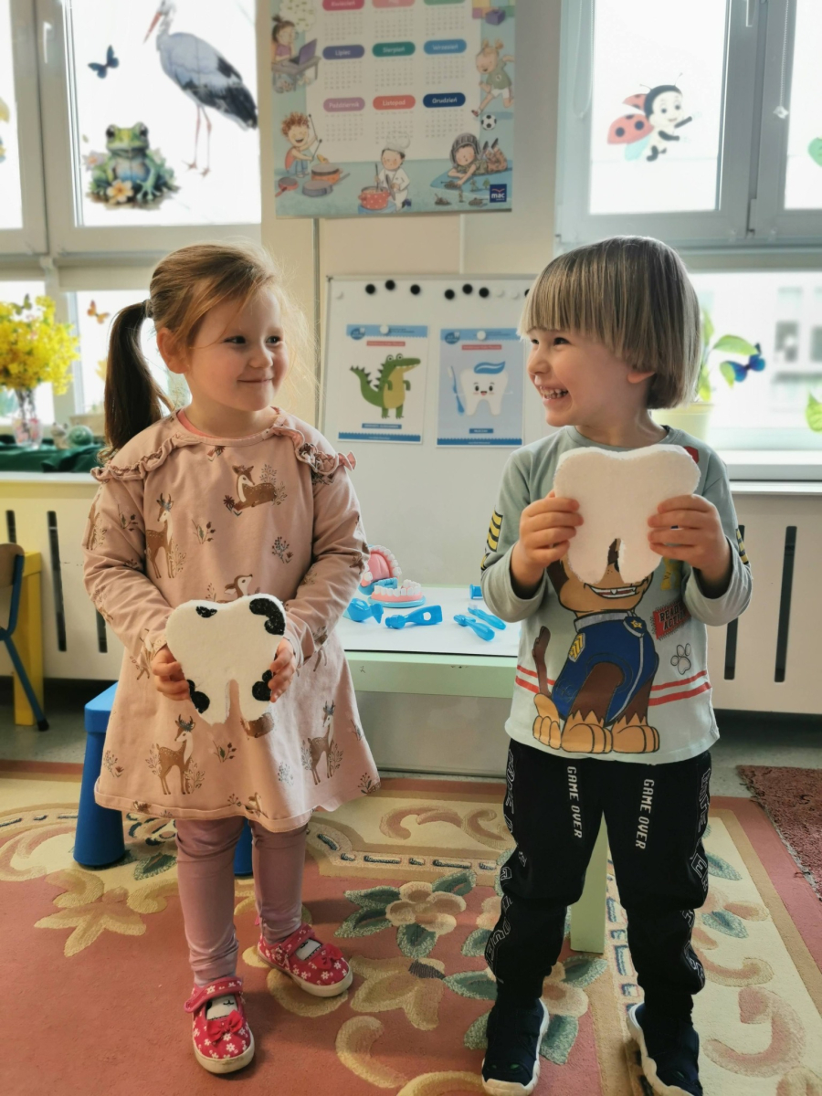 "Walczymy z Gangiem Próchnicy" - zajęcia w ramach Ogólnopolskiego programu edukacji zdrowotnej Klub Mleczaka. Tym razem dzieci z grupy "Skrzaty" wspólnie odkrywały, jak ważne jest właściwe dbanie o zęby oraz dlaczego nie należy bać się wizyty u dentysty. Nie zabrakło zdobywania nowej sprawności: Pogromcy Gangu Próchnicy!