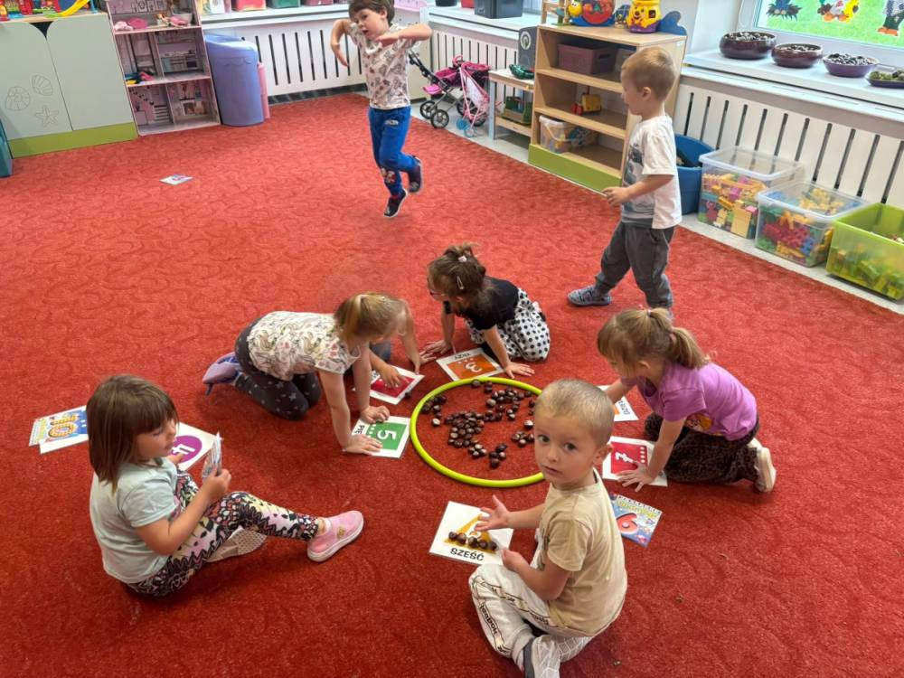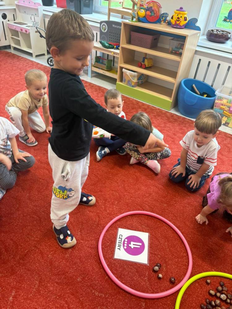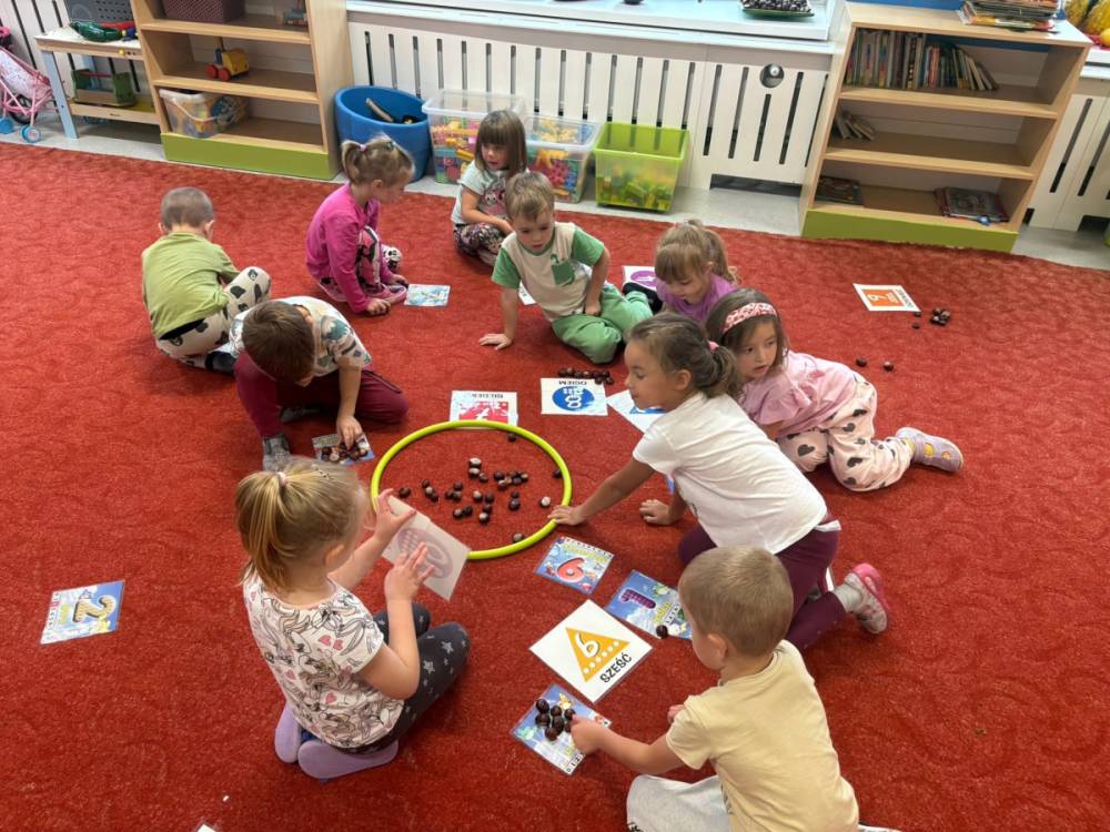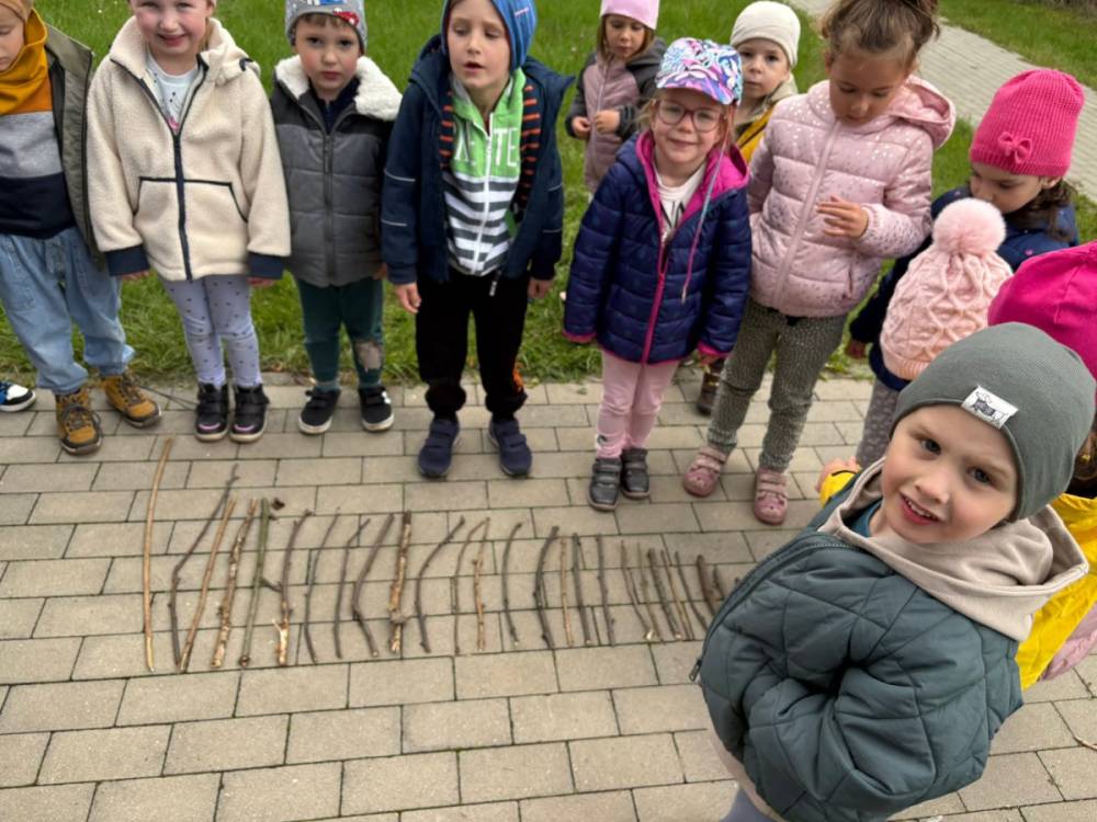 Dzieci z grupy „Słoneczka” ukończyły realizację zadań pierwszego modułu Ogólnopolskiego Projektu Kreatywna Matematyka-„Matematyka w plenerze”. Przedszkolaki, podczas zajęć terenowych, rozwijały kompetencje matematyczne poprzez praktyczne działania w naturalnym środowisku. Z materiałów przyrodniczych układały szeregi oraz przedmioty w relacji rosnącej i/lub malejącej, potrafiły mierzyć a także porównywać długości, przeliczały w dostępnym zakresie. Realizacja zadań projektu rozbudza dziecięcą aktywność i samodzielność poprzez działania z zakresu edukacji matematycznej.