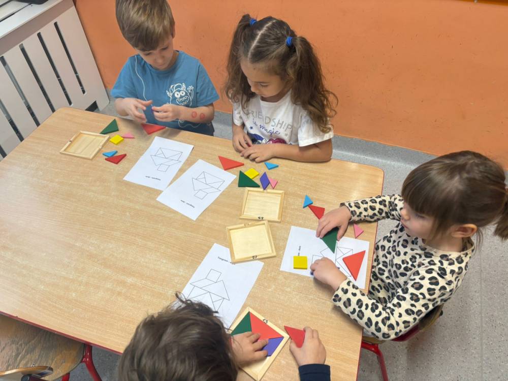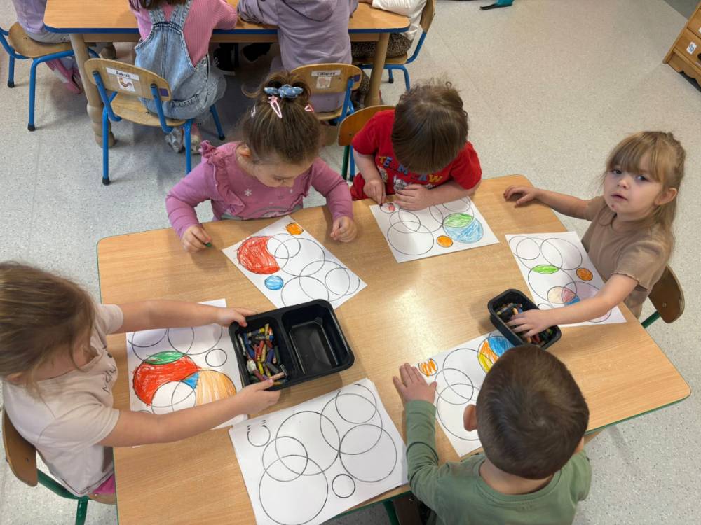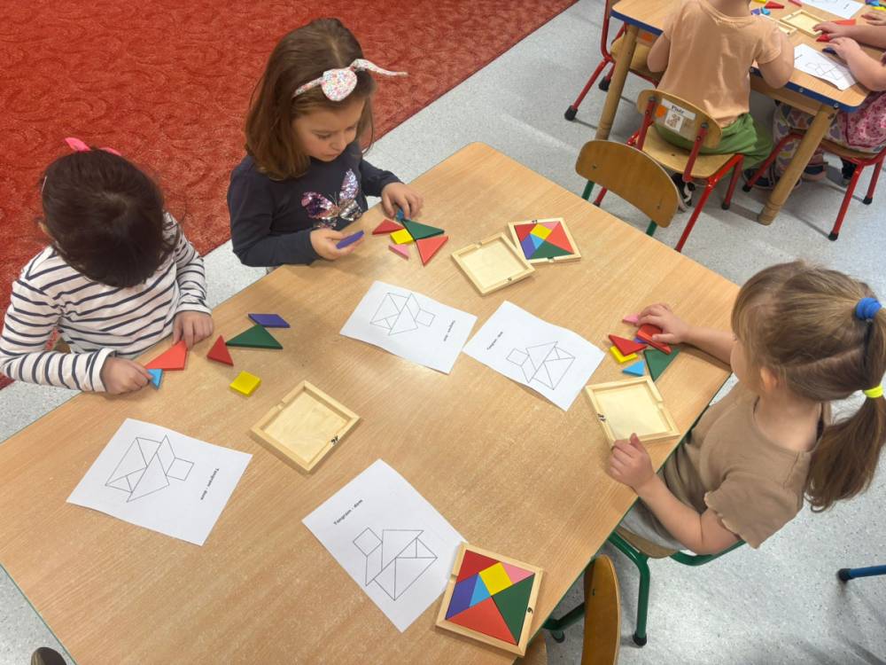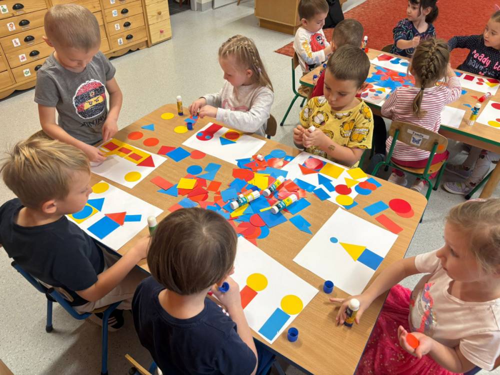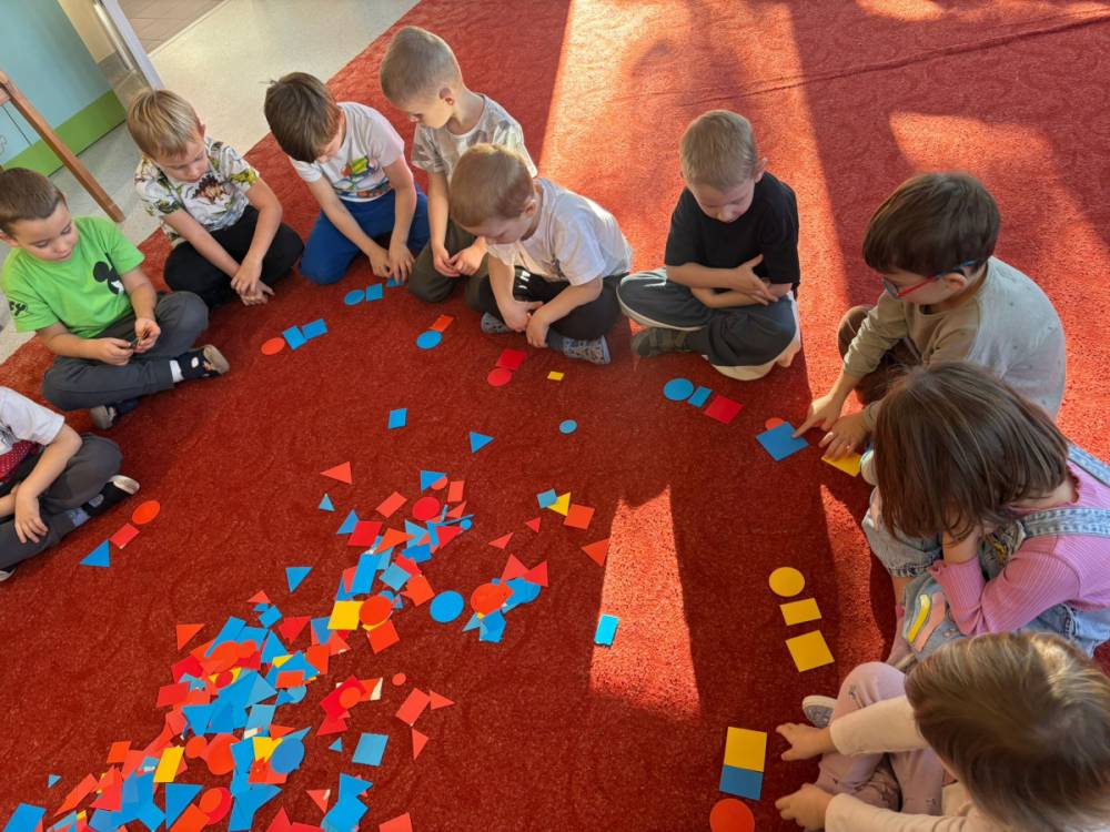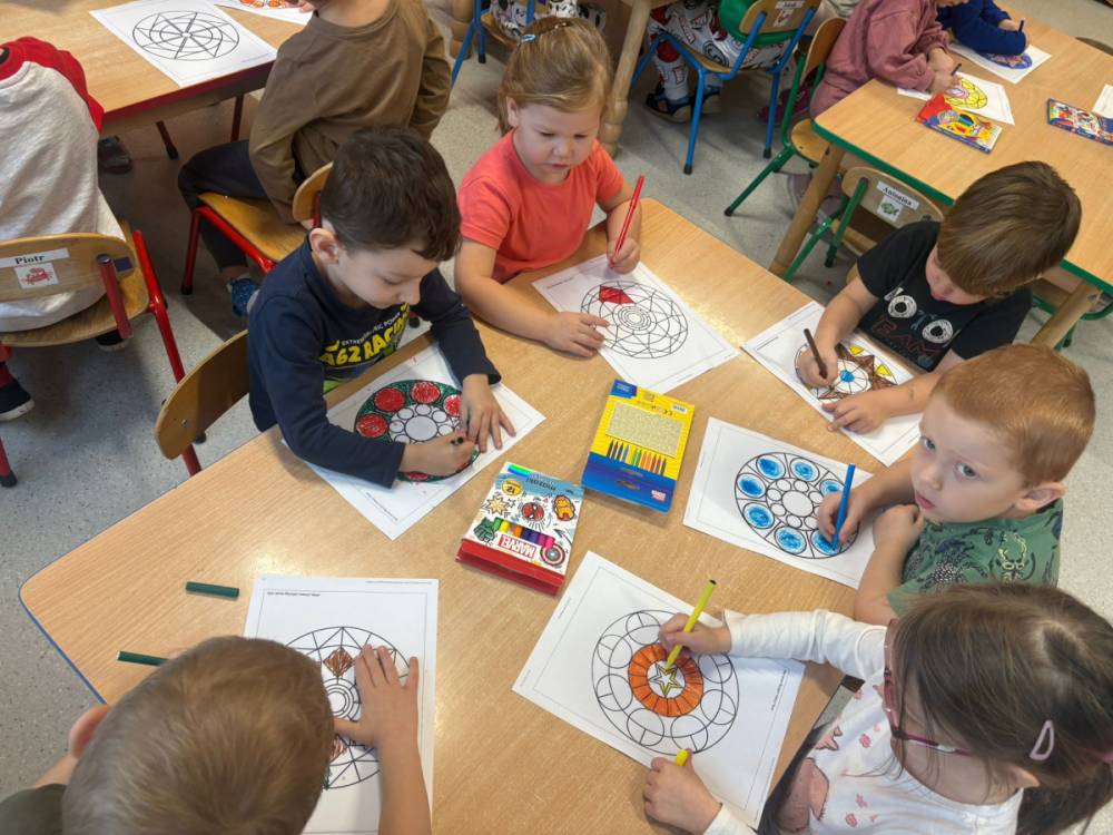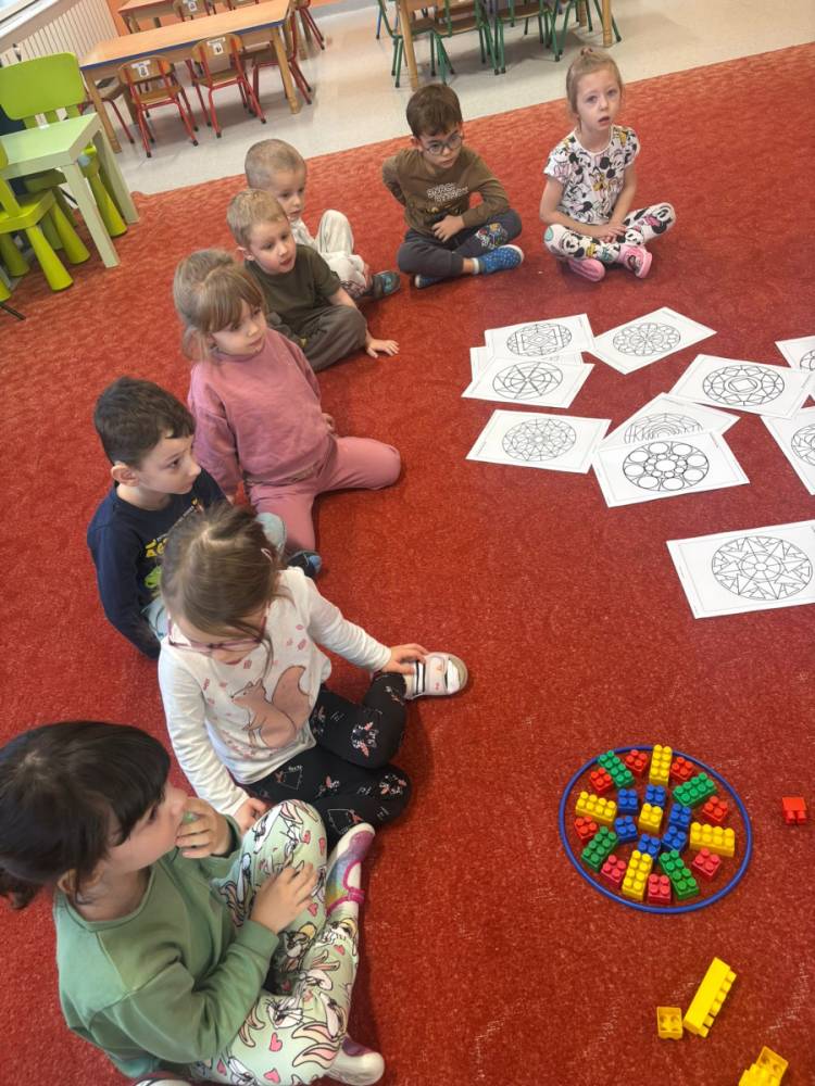 „Zabawy z kształtem” to drugie zadanie wykonane w grupie „Słoneczka” w ramach Ogólnopolskiego Projektu Edukacyjnego „Kreatywna Matematyka”. Dzieci realizując cele zadania rozwijały wyobraźnię geometryczną, doskonaliły umiejętność logicznego myślenia, kształtowały kreatywność i twórcze myślenie. Przedszkolaki, w sposób adekwatny do wieku, zostały zaznajomione z podstawowymi pojęciami geometrycznymi, poznały symbolikę mandali, tworzyły prace plastyczne