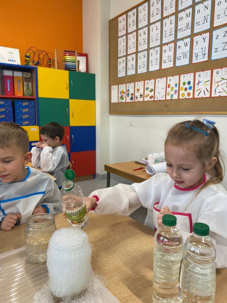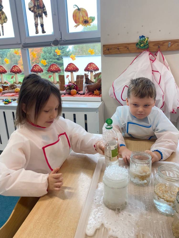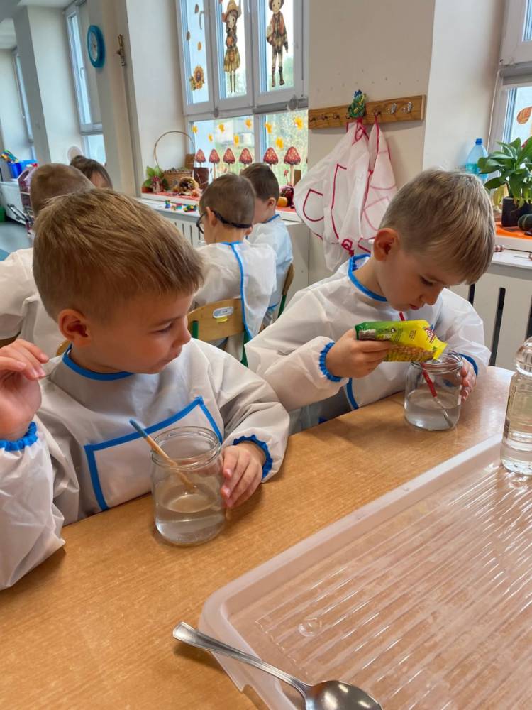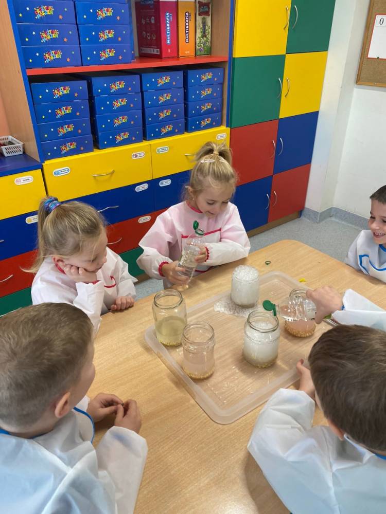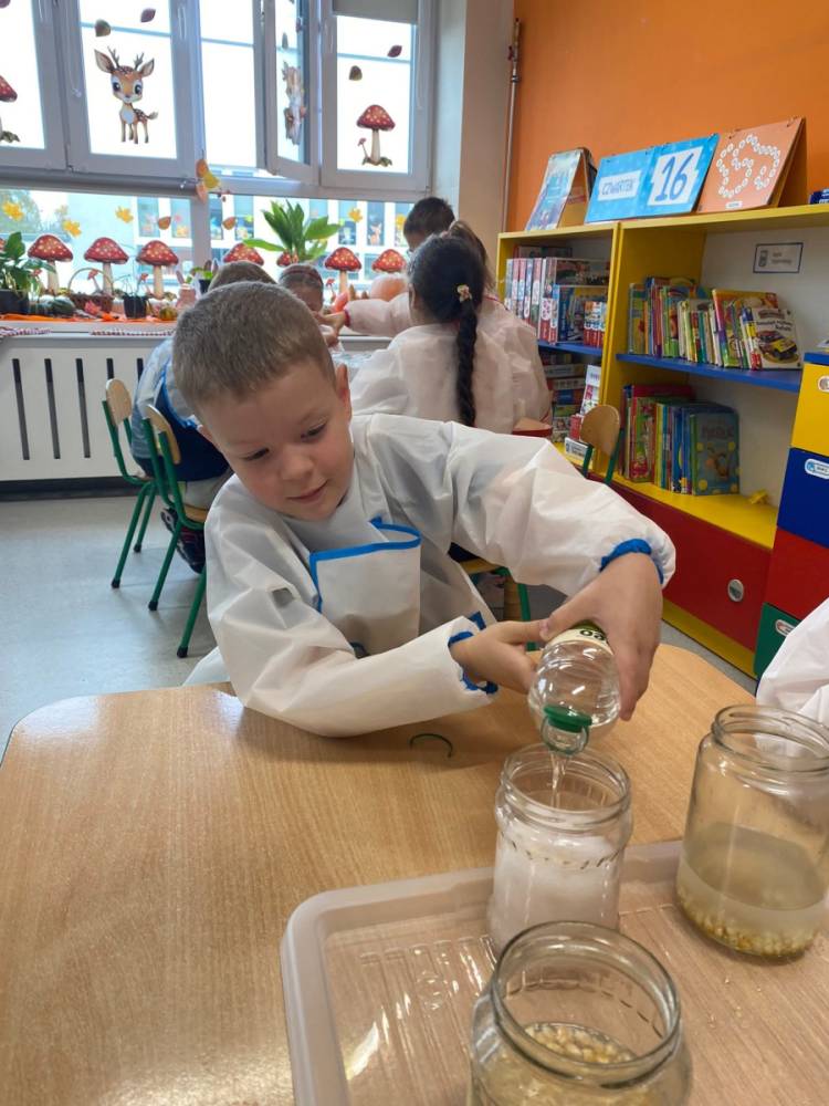 Dzieci z zainteresowaniem obserwowały, jak ziarenka kukurydzy szaleją pod wpływem różnych substancji– było trochę nauki, dużo śmiechu i jeszcze więcej ciekawości.