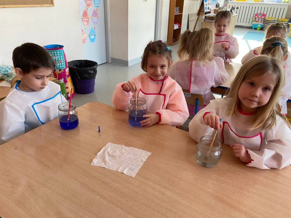 • Eksperymenty pt. ,,Świąteczne barwy ” i ,,Znikający atrament ”