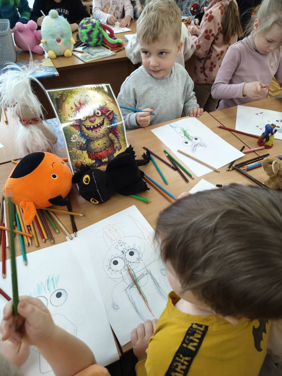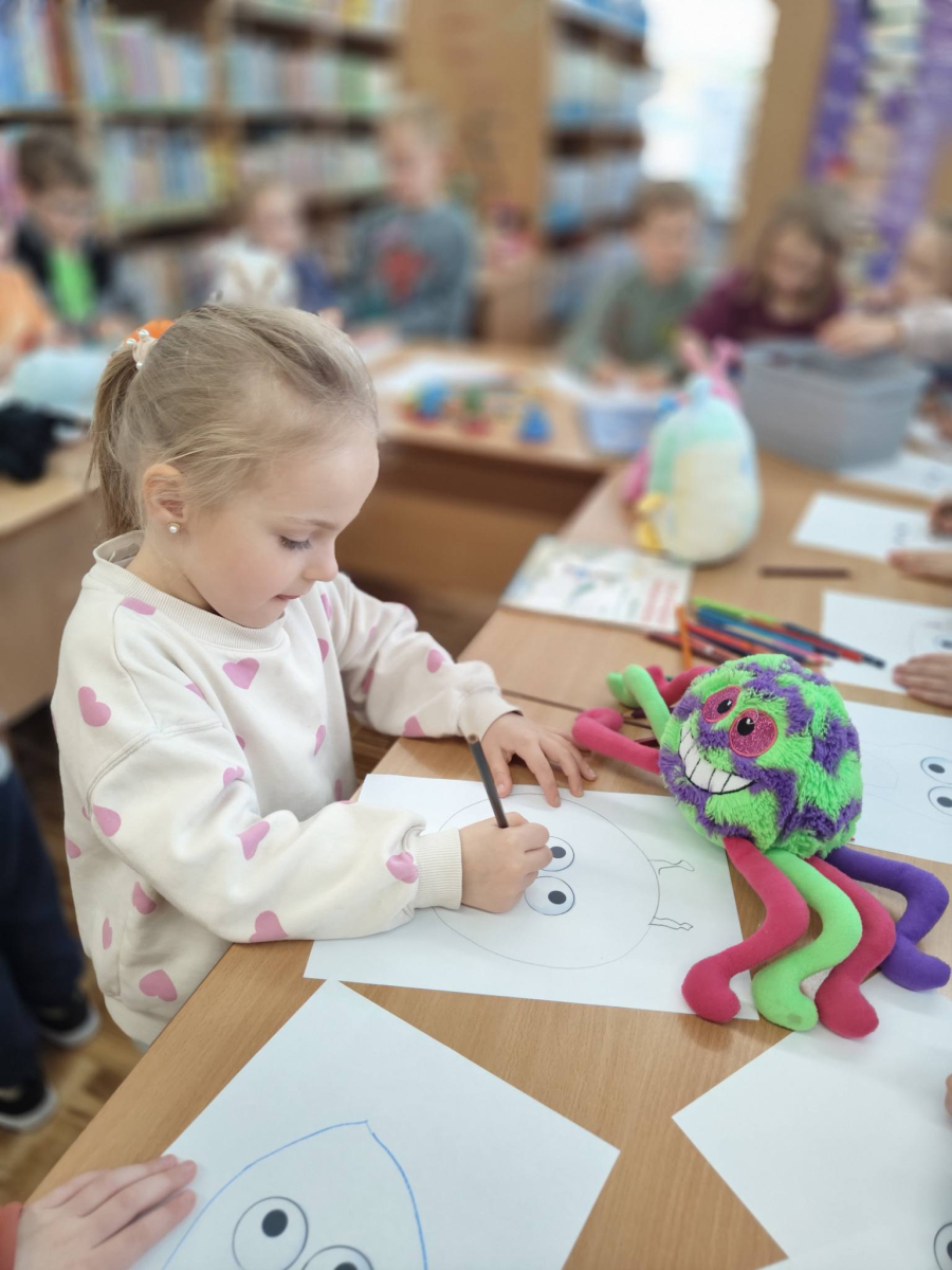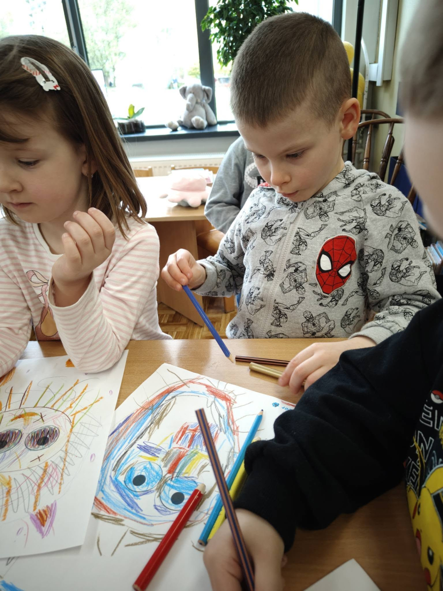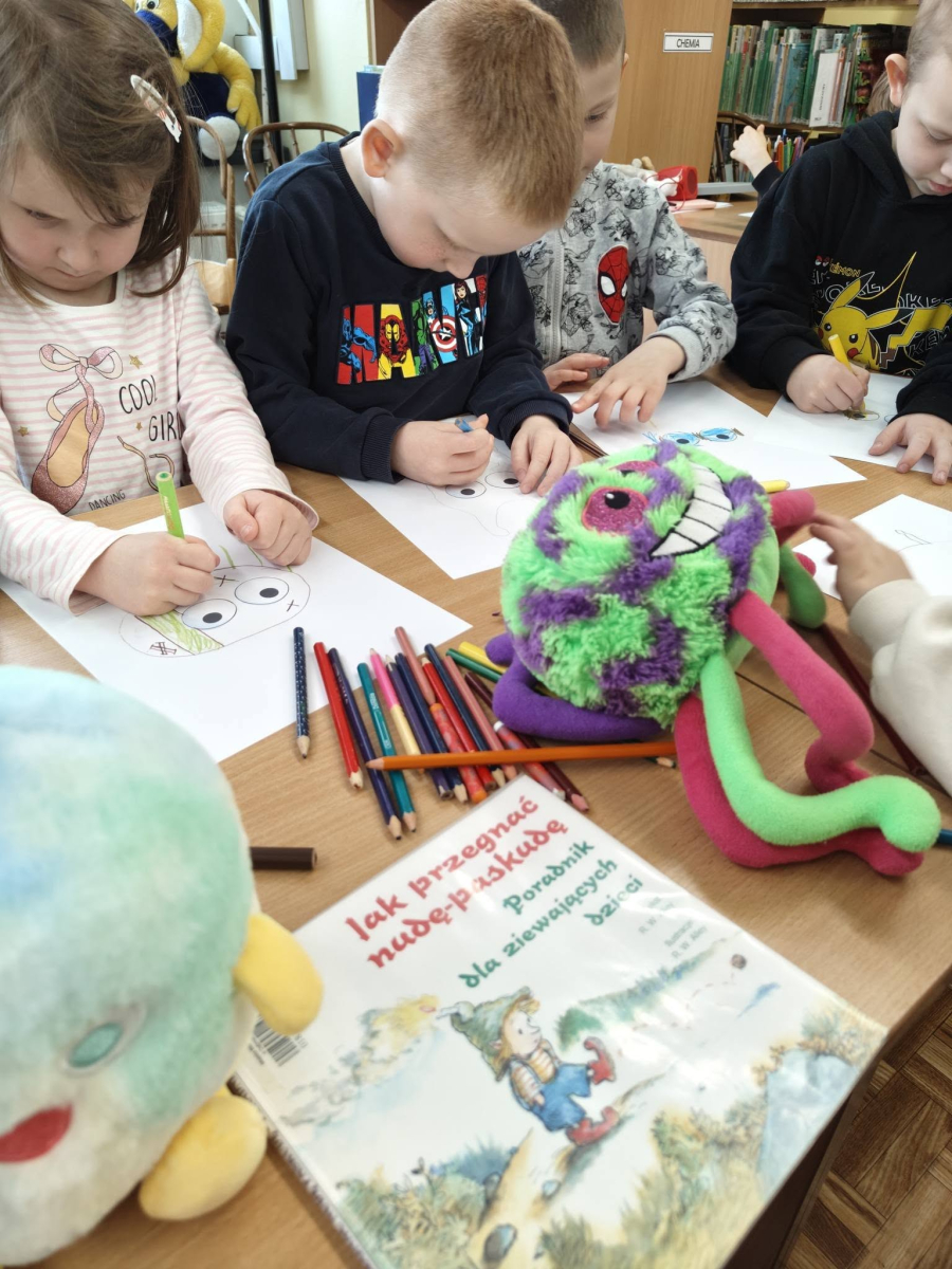 Grupa 5-latków z Biedronek kolejny raz odwiedziła Filię nr 18 MBP w Dąbrowie Górniczej , gdzie uczestniczyliśmy w bardzo ciekawych warsztatach dotyczących "Paskud". Dzieci zastanawiały się, czym właściwie jest paskuda i jak może wyglądać . W trakcie rozmowy z Panią bibliotekarką przedszkolaki doszły do ważnego wniosku - nie wygląd jest najważniejszy, lecz to, co mamy w sercu. Nauczyliśmy się, że nie należy oceniać innych po wyglądzie. Dzieci przypomniały sobie również różne „paskudy” z literatury dziecięcej, szczególnie po wysłuchaniu słuchowiska "Piękna i Bestia". Na koniec stworzyły własne, niezwykłe prace plastyczne.