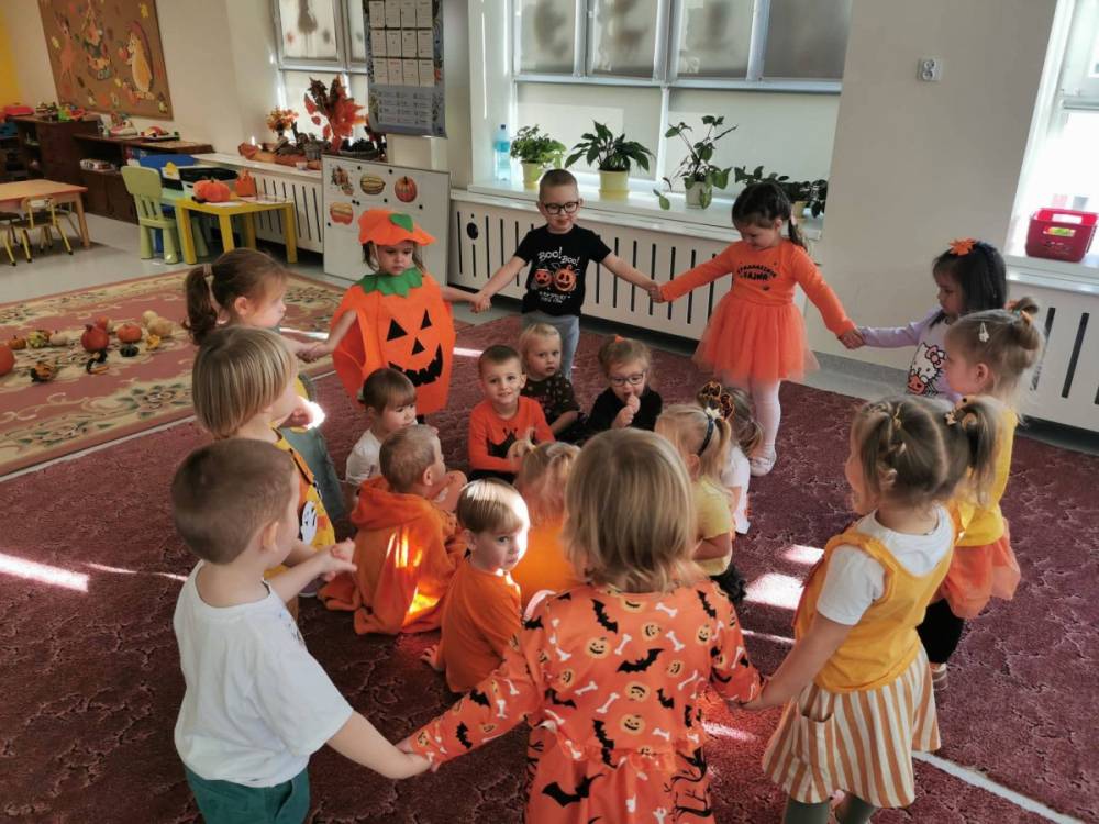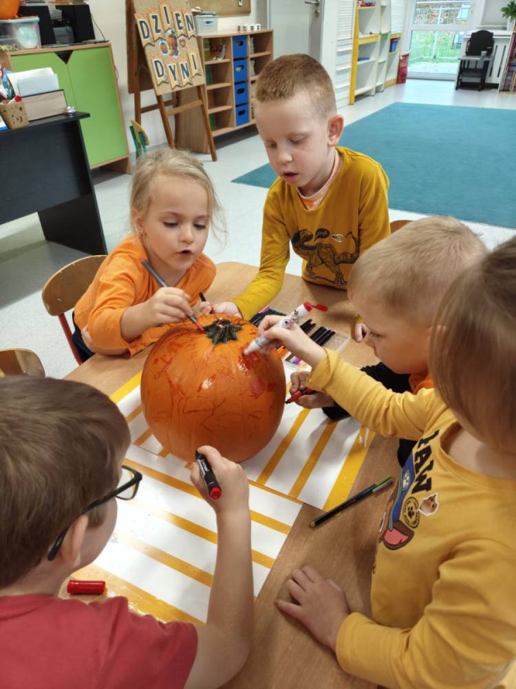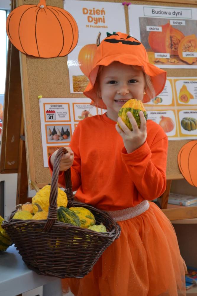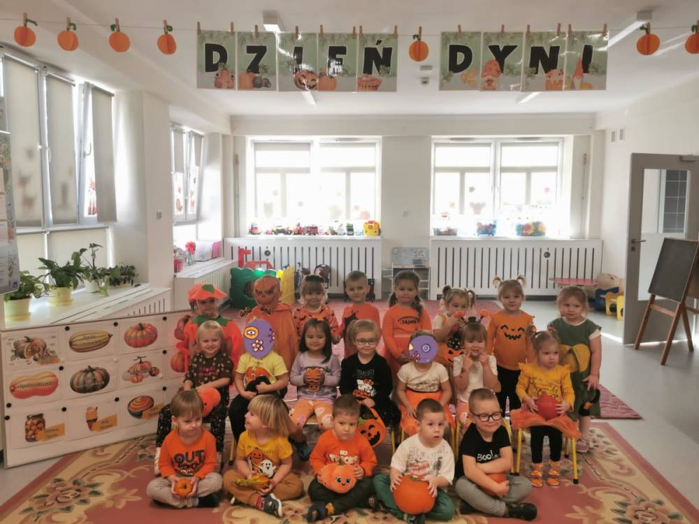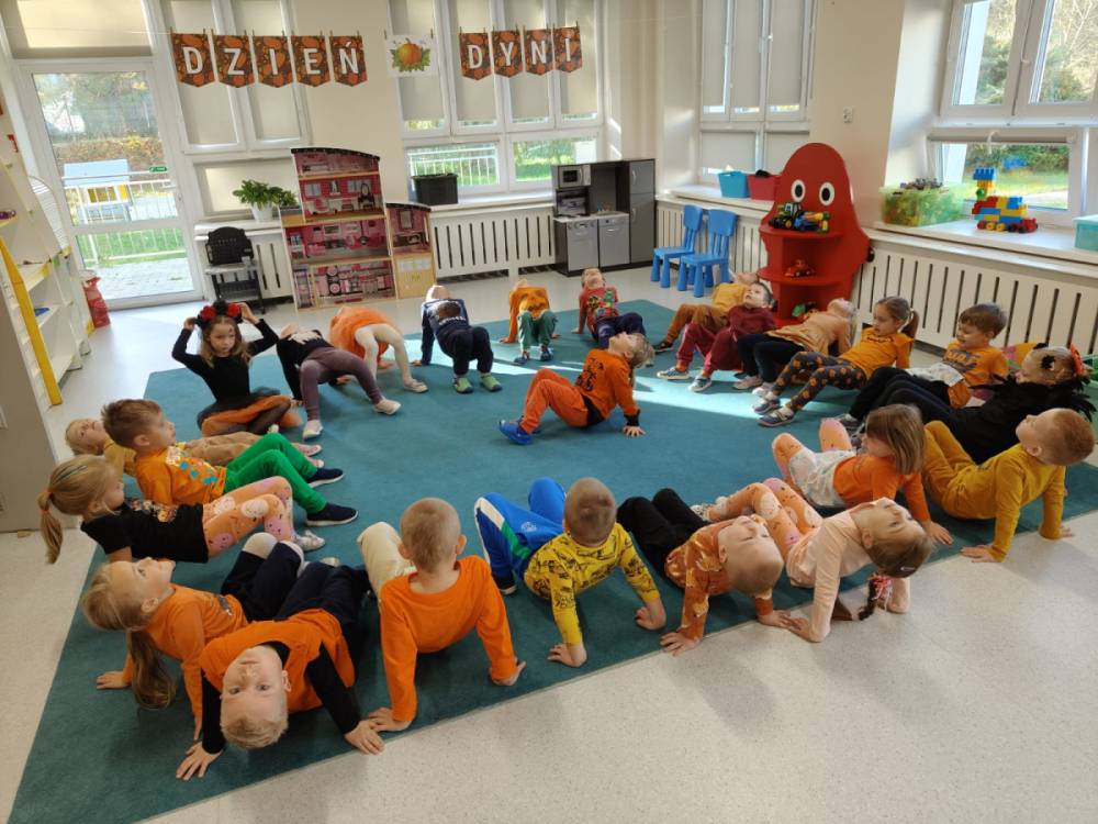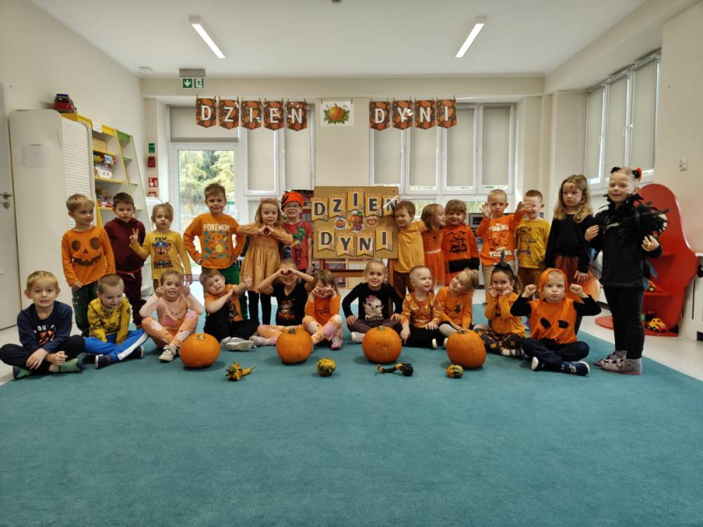 Pod koniec października nasze przedszkolaki świętowały Dzień Dyni - wyjątkowe wydarzenie pełne radości, nauki i zabawy. W każdej grupie dzień ten wyglądał nieco inaczej, jednak wszędzie królował pomarańczowy kolor i dyniowy nastrój.