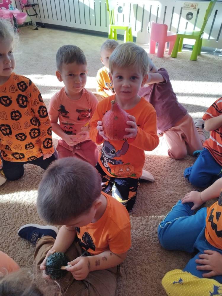 Podczas zajęć przedszkolaki poznawały różne odmiany dyń, odkrywały ich właściwości odżywcze i dowiadywały się, jak wiele można z nich przygotować smakołyków.