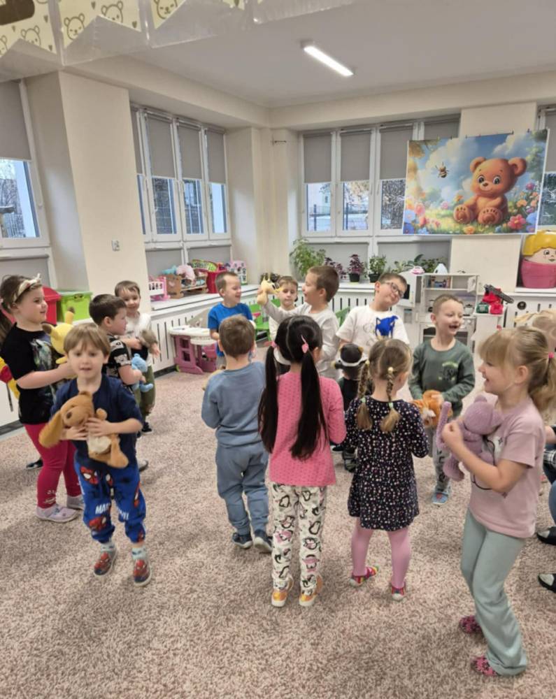 Przedszkolaki z dumą przyniosły swoje ulubione pluszaki, opowiadały o nich, bawiły się razem i uczestniczyły w misiowych zabawach.