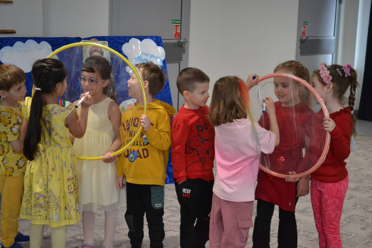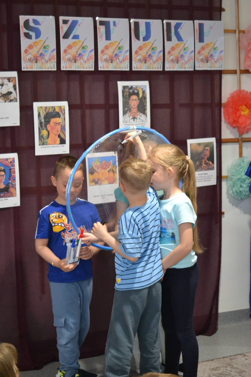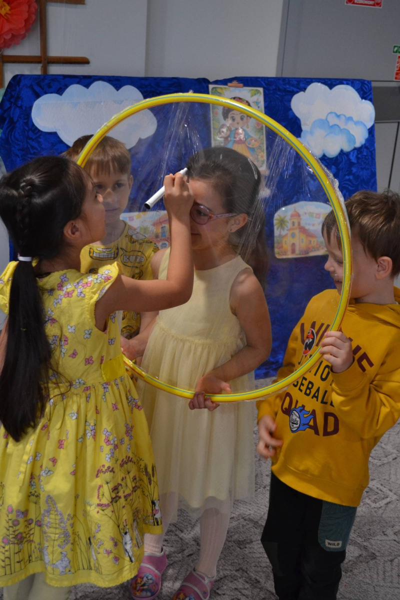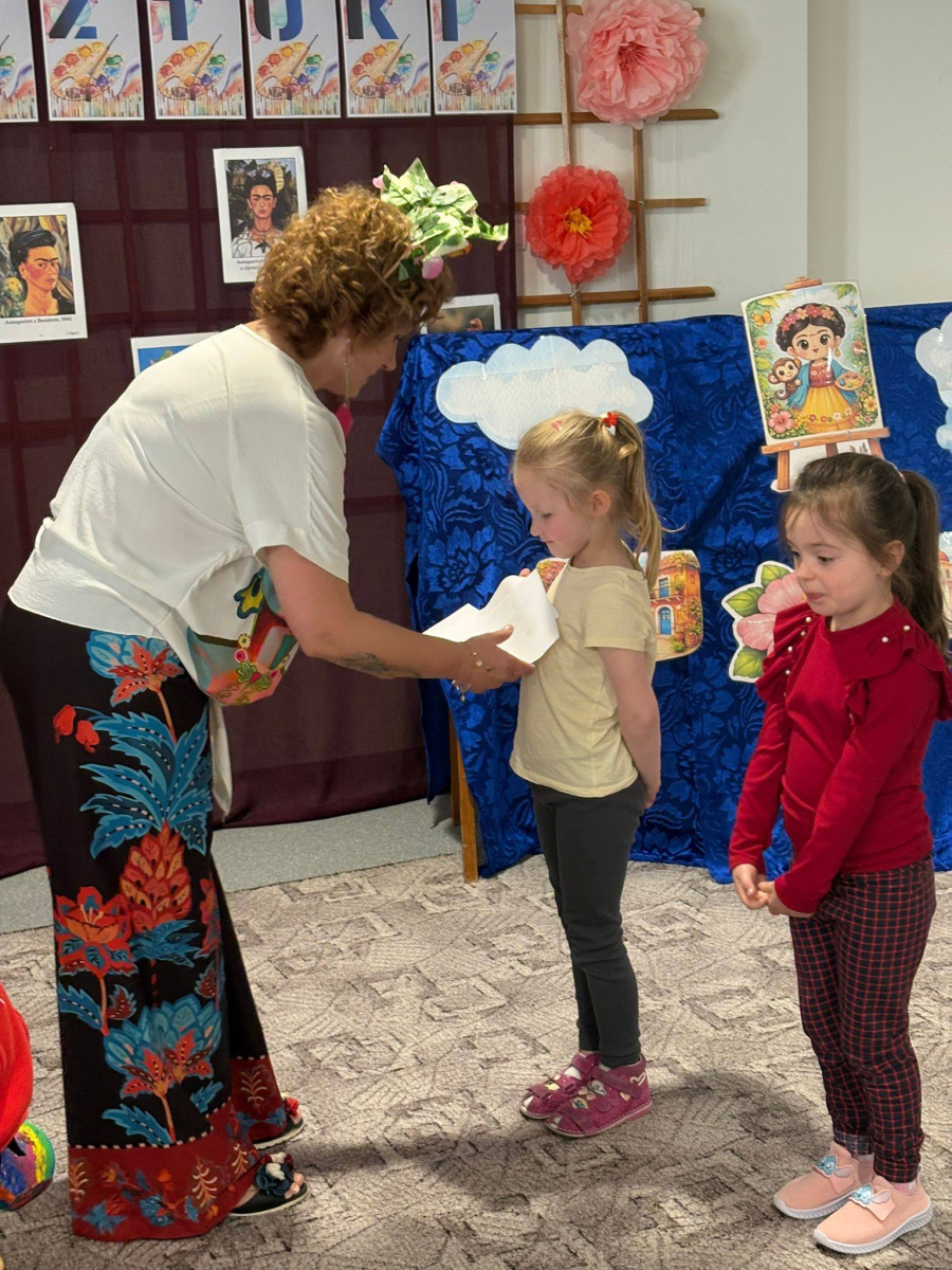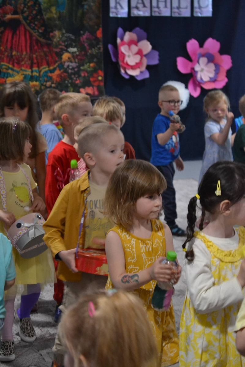 Nasze przedszkole wypełniło się kolorem, muzyką i niezwykłą energią twórczą. Inspiracją do wspólnych działań była postać Fridy Kahlo - artystki, której życie i twórczość stały się punktem wyjścia do odkrywania świata sztuki. Dzieci poznały jej historię poprzez opowieść i teatrzyk, który w przystępny sposób przybliżył im losy malarki. Następnie same mogły wejść w rolę twórców - uczestnicząc w aktywnościach plastycznych, muzycznych i tanecznych, rozwijając wyobraźnię oraz wrażliwość artystyczną. Szczególnym momentem było wspólne muzykowanie - przedszkolaki zagrały na własnoręcznie wykonanych instrumentach do rytmów tradycyjnej pieśni „La Cucaracha”. Nie zabrakło również nauki „Meksykańskiego Tańca Kapelusza” - La Raspa, który dostarczył dzieciom wiele radości i ruchu. Finałem dnia była prawdziwa fiesta. Wspólny „wężyk” do skocznej muzyki z ojczyzny Fridy stał się pięknym zwieńczeniem artystycznej podróży. Dzień Sztuki był nie tylko okazją do zabawy, ale także do odkrywania, że sztuka może być bliska każdemu - niezależnie od wieku.
