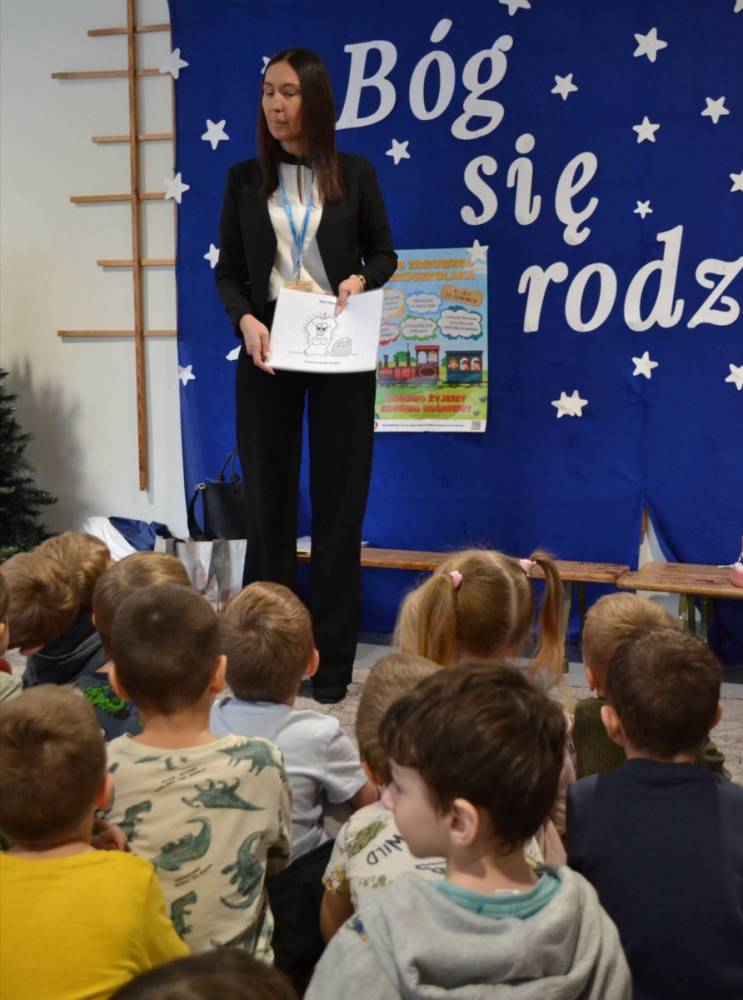 Nasze przedszkolaki uczestniczyły w prelekcji prowadzonej przez pracownika Powiatowej Stacji Sanitarno-Epidemiologicznej w Dąbrowie Górniczej.