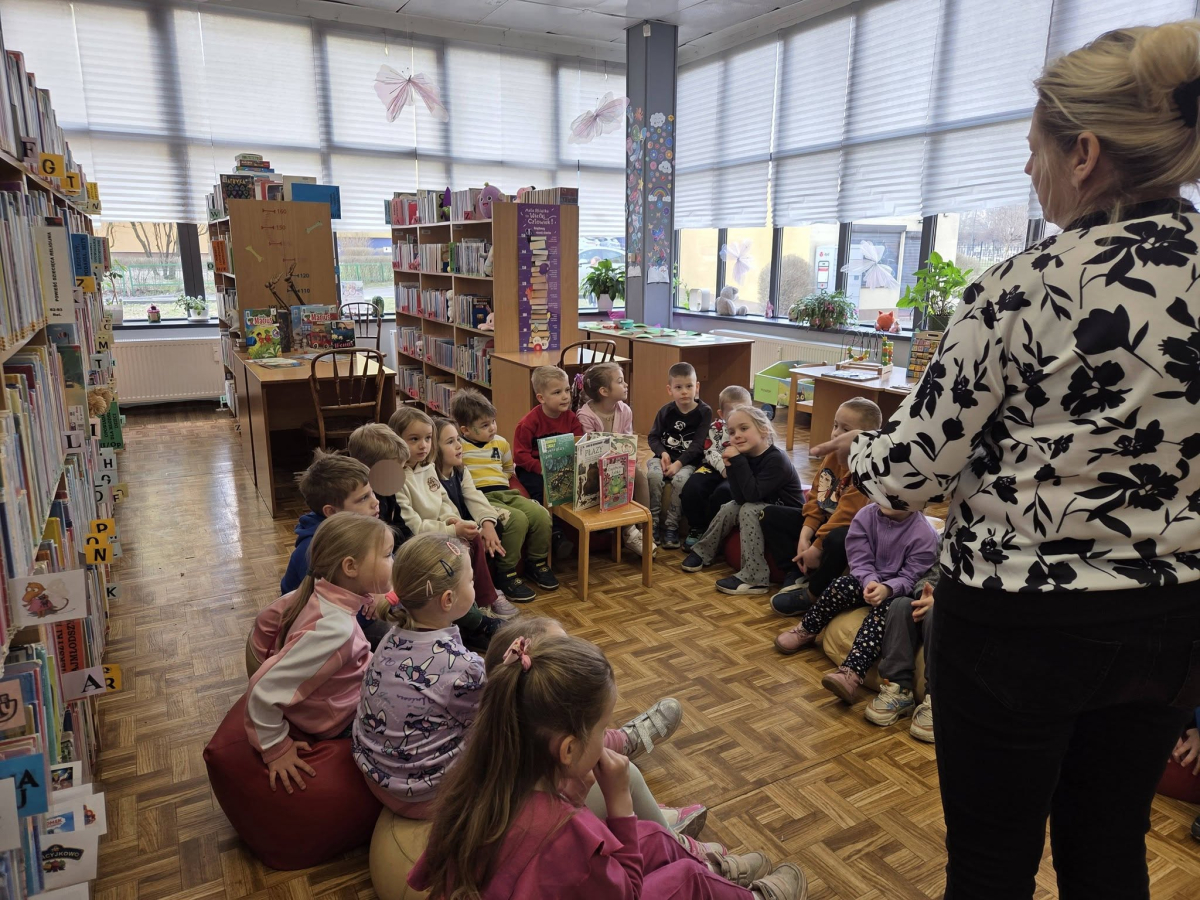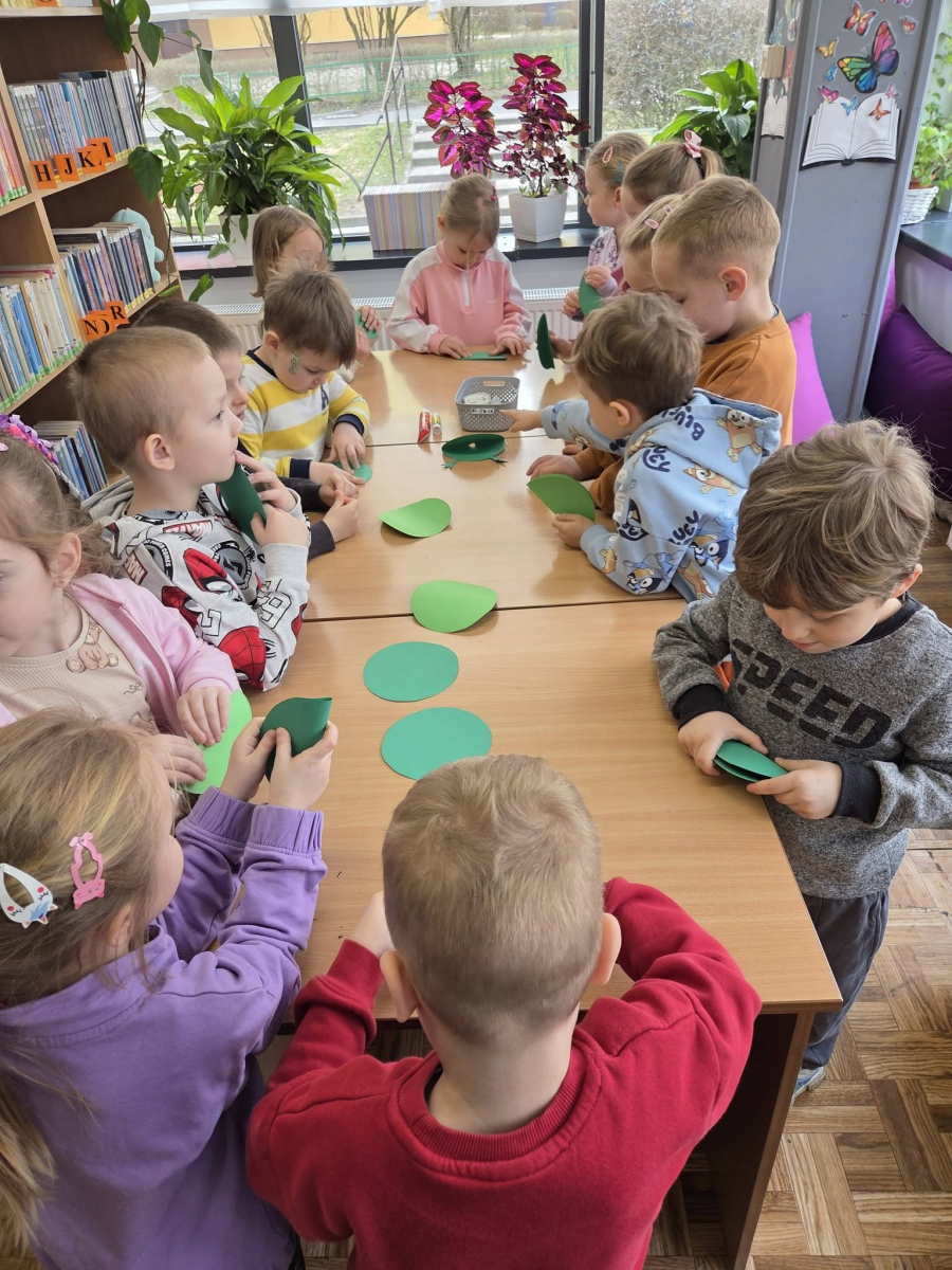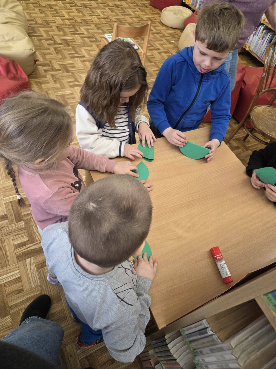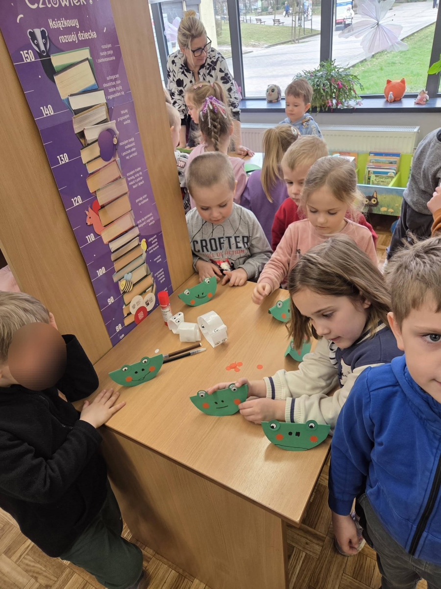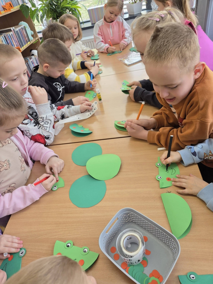 Nie zabrakło też czasu na kreatywne tworzenie, "Biedronki" wyczarowały z papierowych kół uśmiechnięte, żabie postacie. Dziękujemy Paniom Bibliotekarkom za inspirujące zajęcia oraz wspólną naukę przez zabawę!