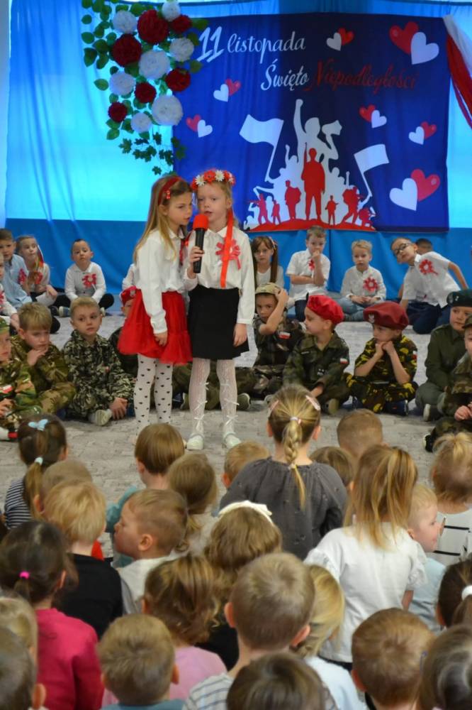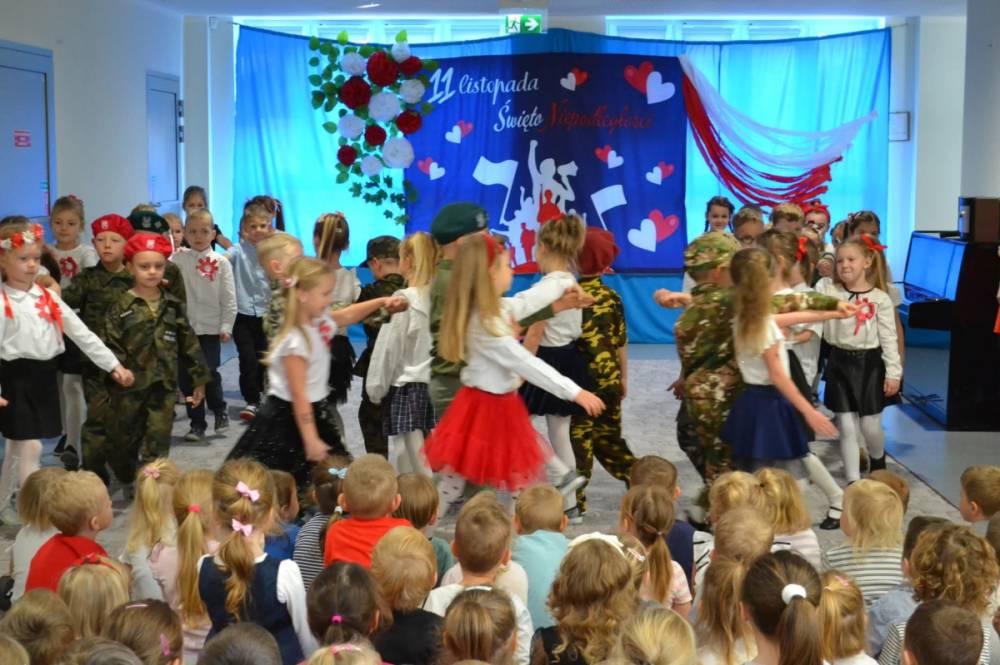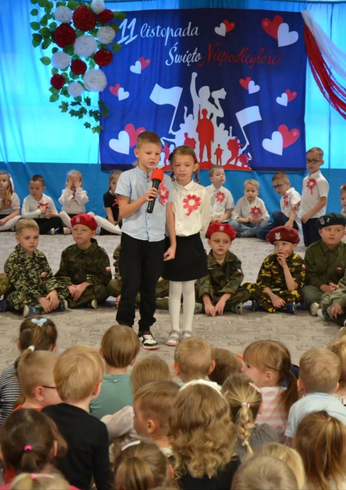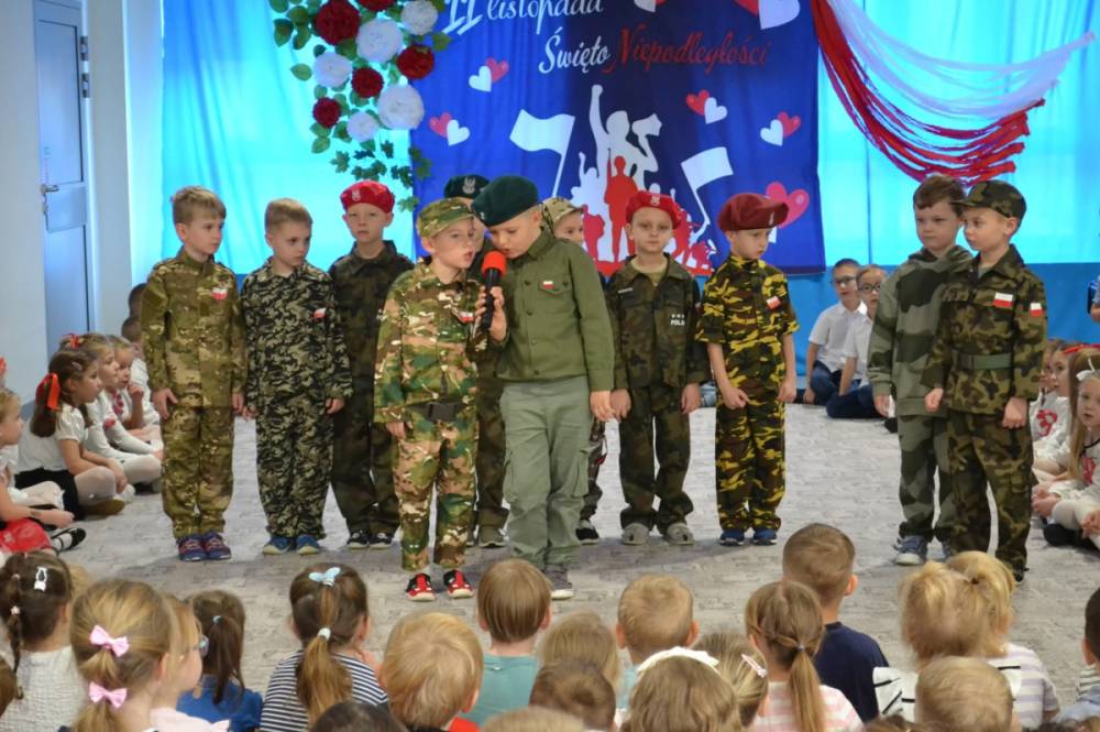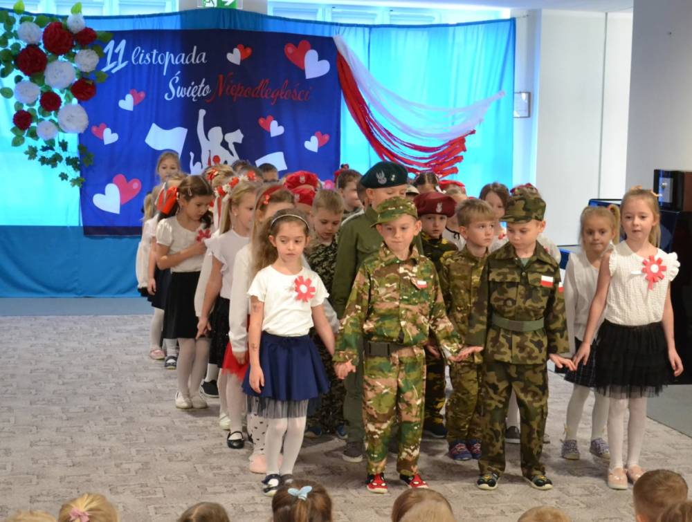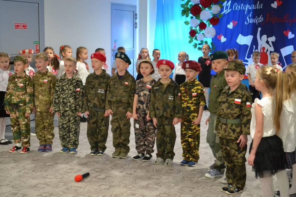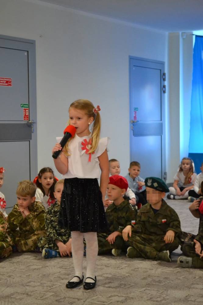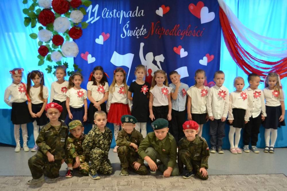 W duchu patriotyzmu i wdzięczności dla bohaterów, którzy walczyli o wolność naszej Ojczyzny , dzieci z grup „Motylki” i „Żabki” przygotowały wyjątkowy występ - przybliżyły nam ważne fakty z historii Polski, zaprezentowały wzruszające pieśni patriotyczne, a na zakończenie mogliśmy podziwiać dostojny taniec polonez.