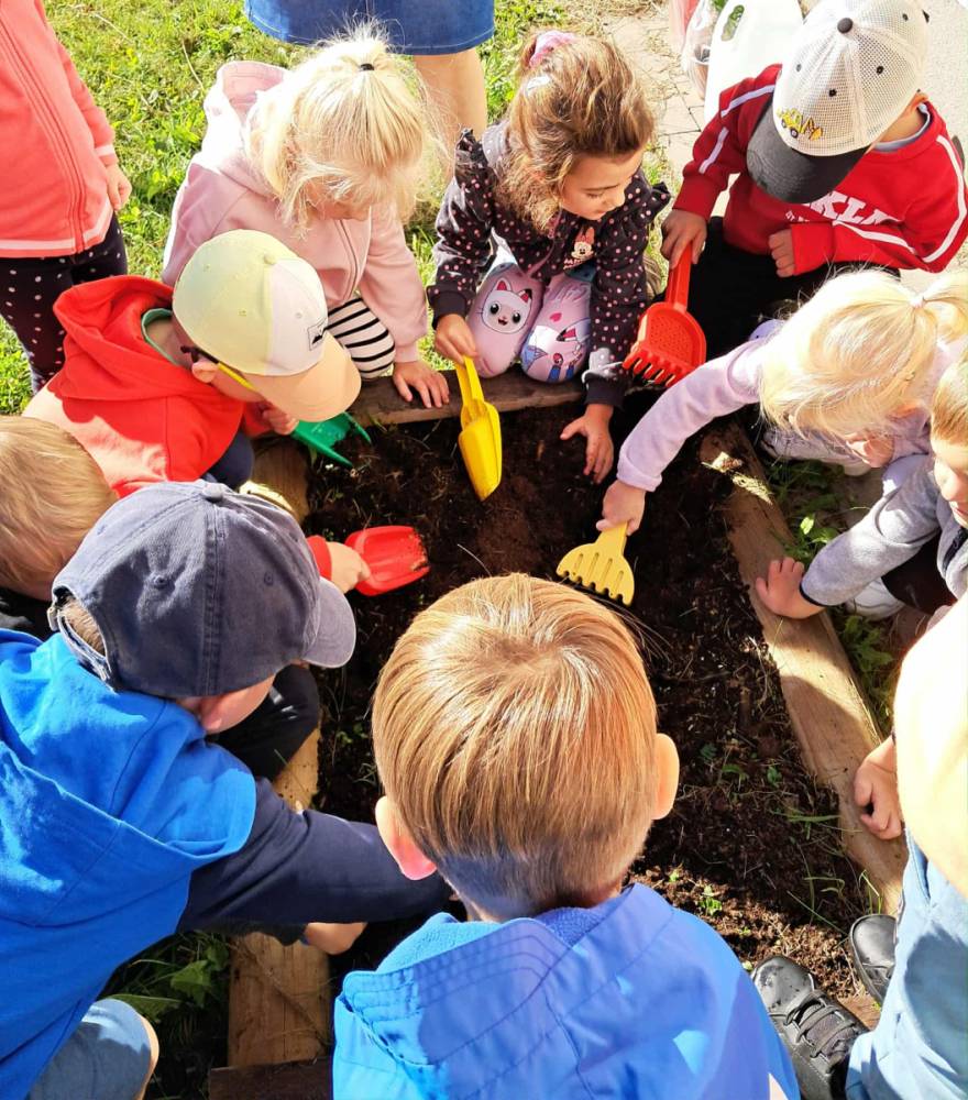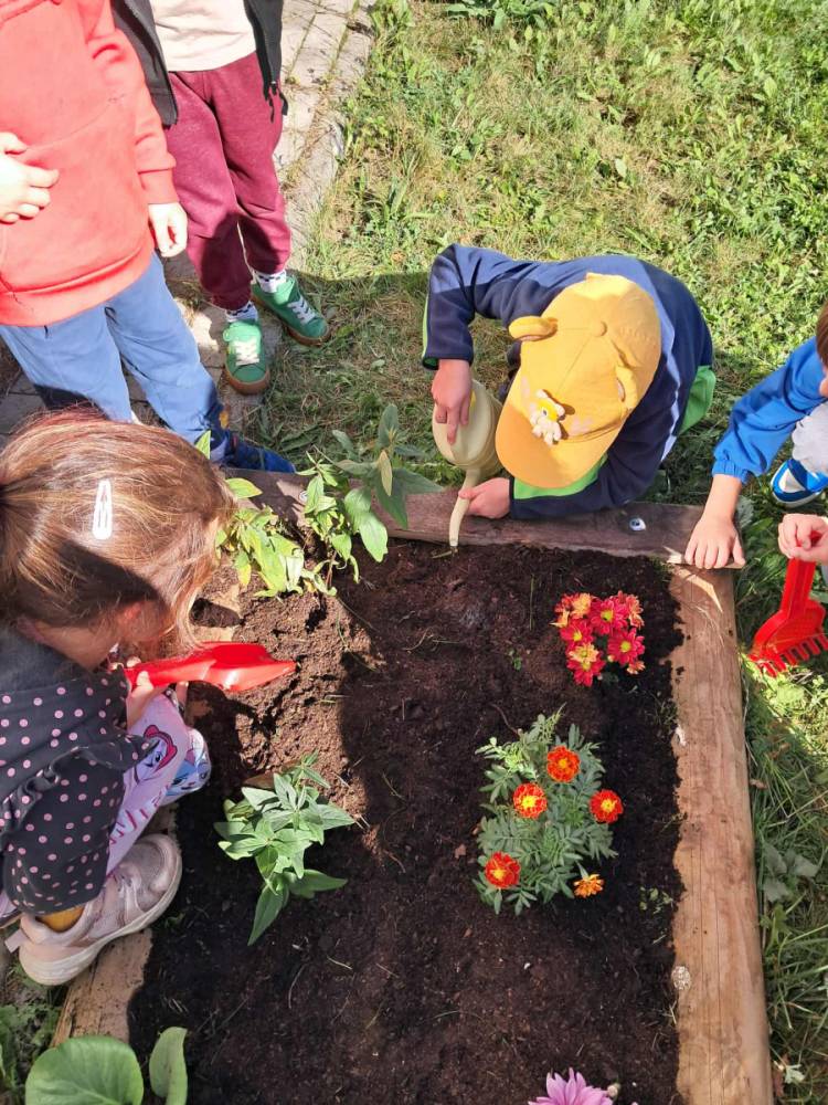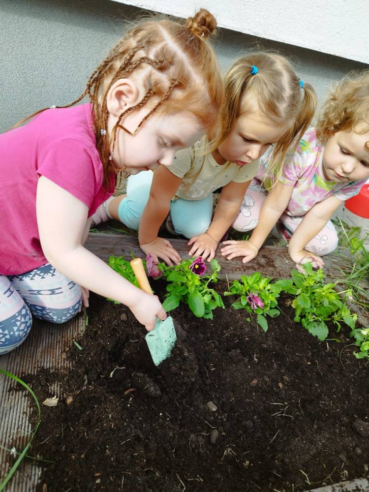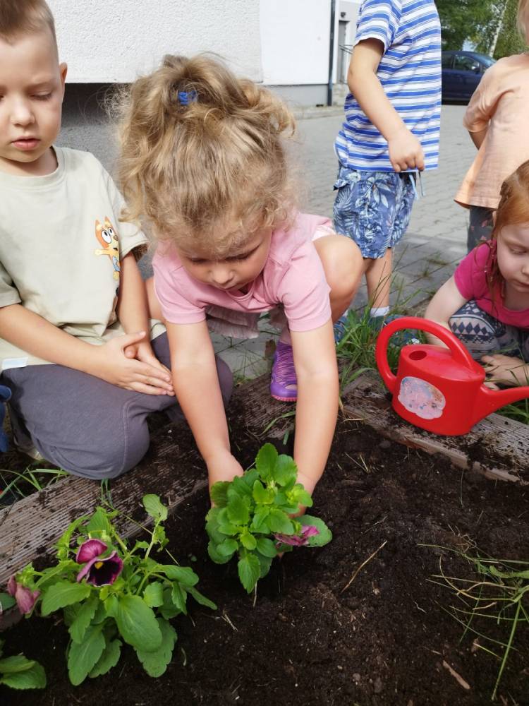 Każda grupa przedszkolaków z ogromnym zaangażowaniem wzięła udział w jesiennym sadzeniu cebulek kwiatowych. Mali ogrodnicy z zapałem kopali, sadzili, podlewali i już teraz troszczą się o swoje rabatki.