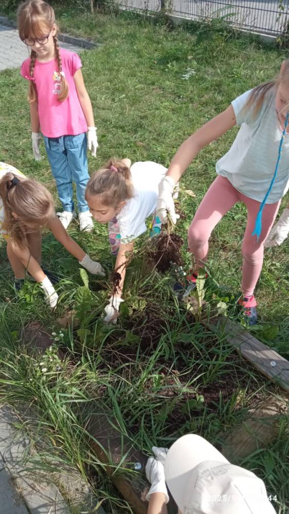 Z niektórych cebulek wyrosną barwne kwiaty wiosenne, a inne już teraz pokazują swoje jesienne kolory, które można podziwiać na przedszkolnych rabatkach.