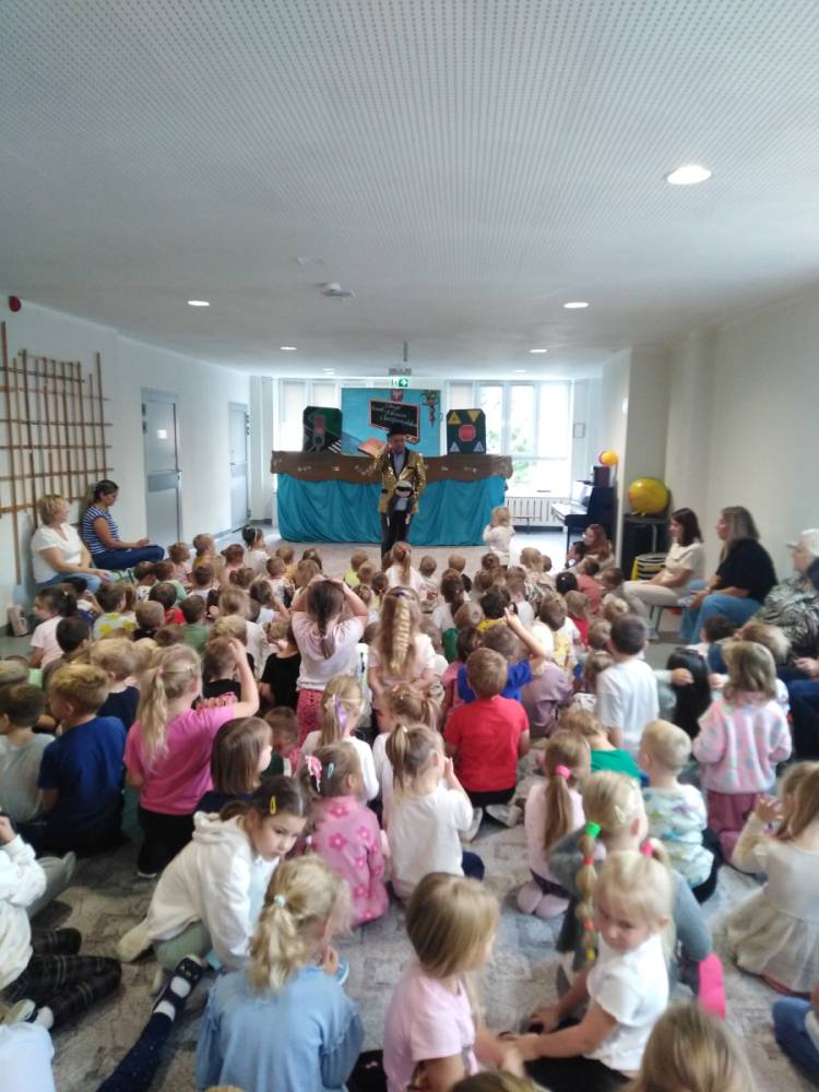 W naszym przedszkolu gościł teatrzyk kukiełkowy ,,Pinokio” z przedstawieniem „Wesoła Szkoła”.