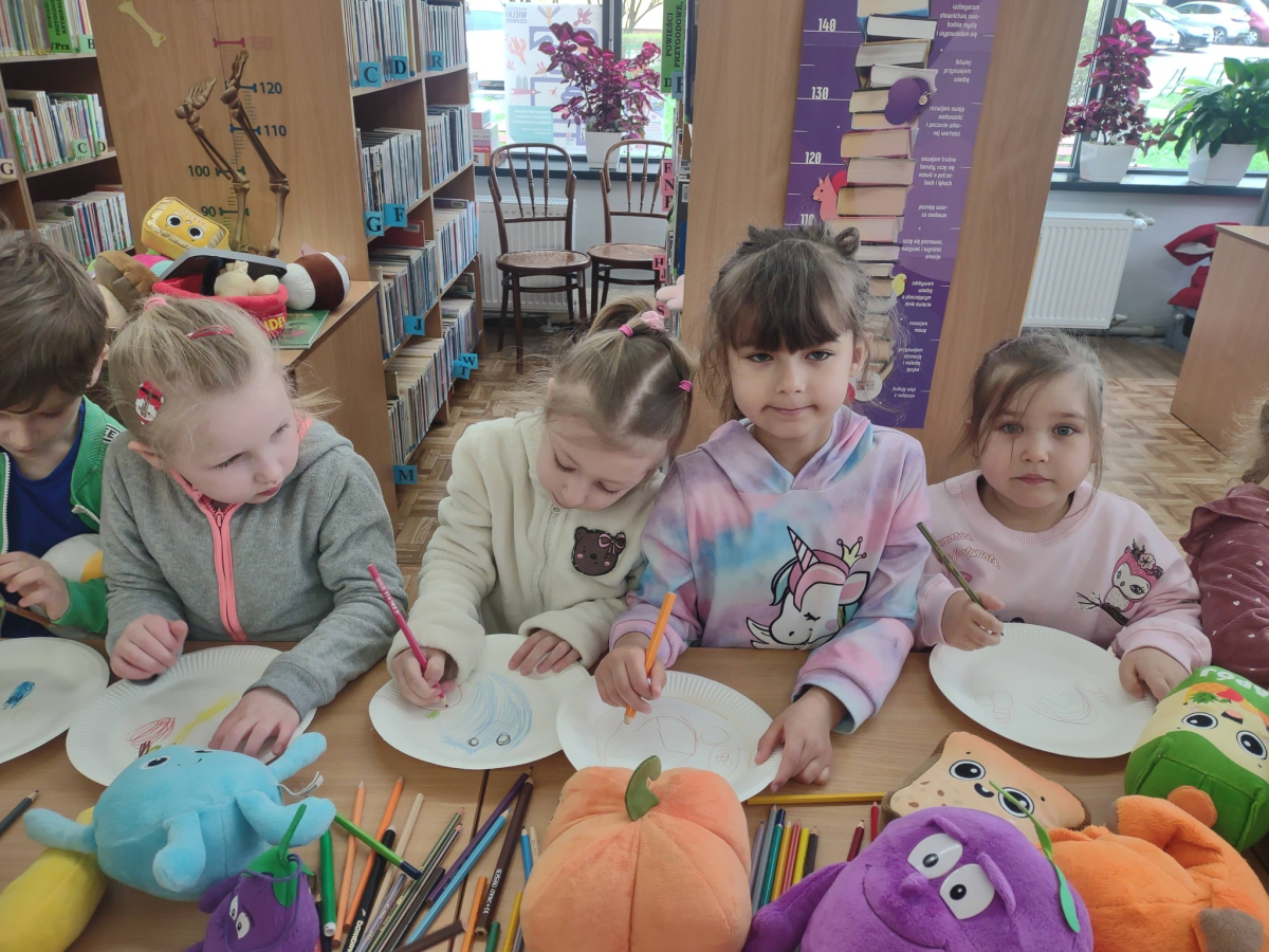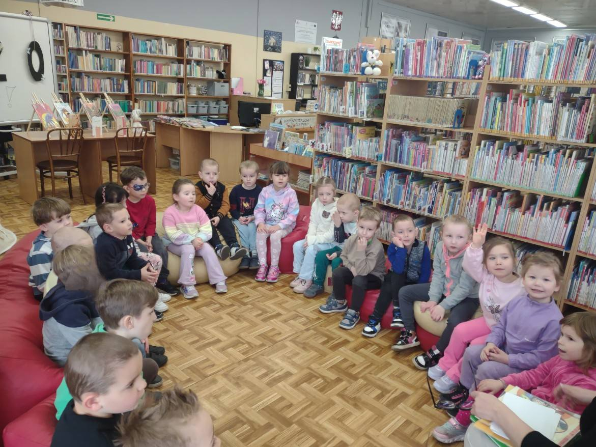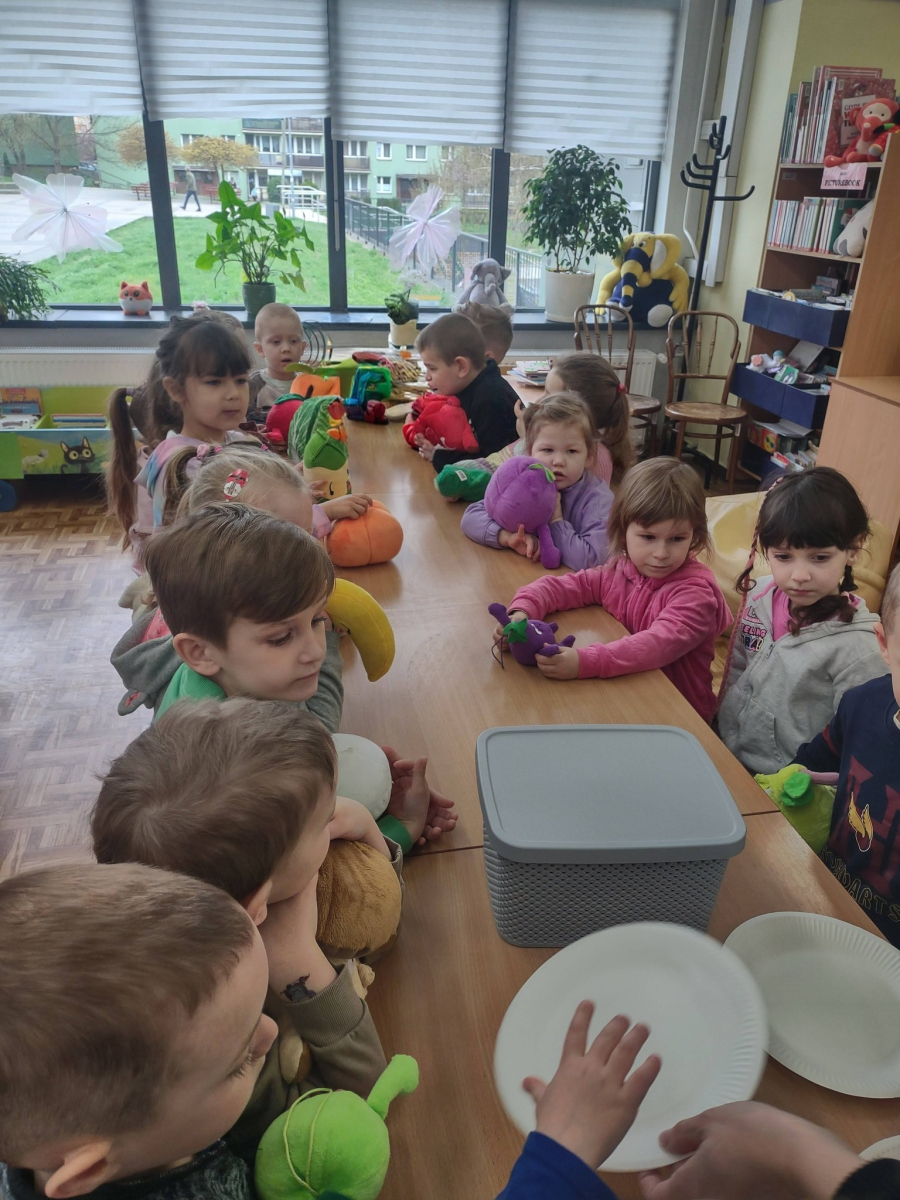 Grupa "Słoneczka" wybrała się na wyjątkową wizytę do biblioteki. Na początku spotkania pani bibliotekarka oprowadziła przedszkolaki po bibliotece, pokazując, gdzie znajdują się książki dla dzieci oraz przypomniała, że należy o nie dbać i szanować. Następnie odbyły się zajęcia tematyczne dotyczące zdrowego odżywiania. Przedszkolaki wysłuchały bajki, która podsumowała temat zdrowego stylu życia.