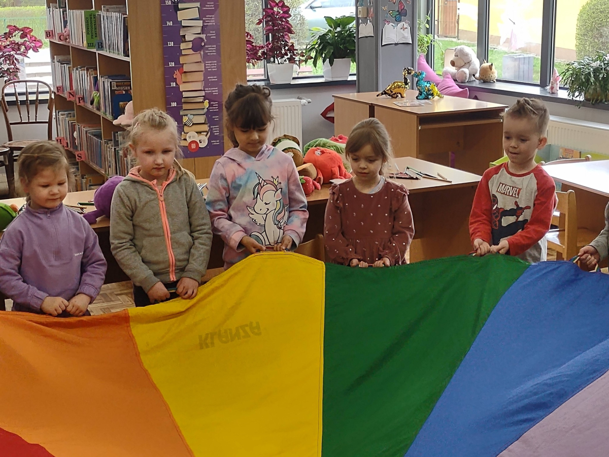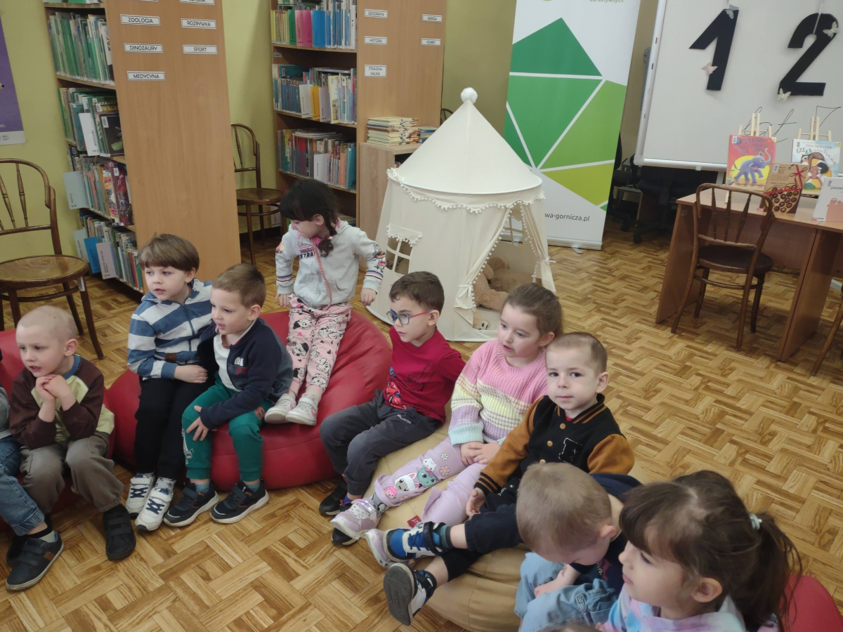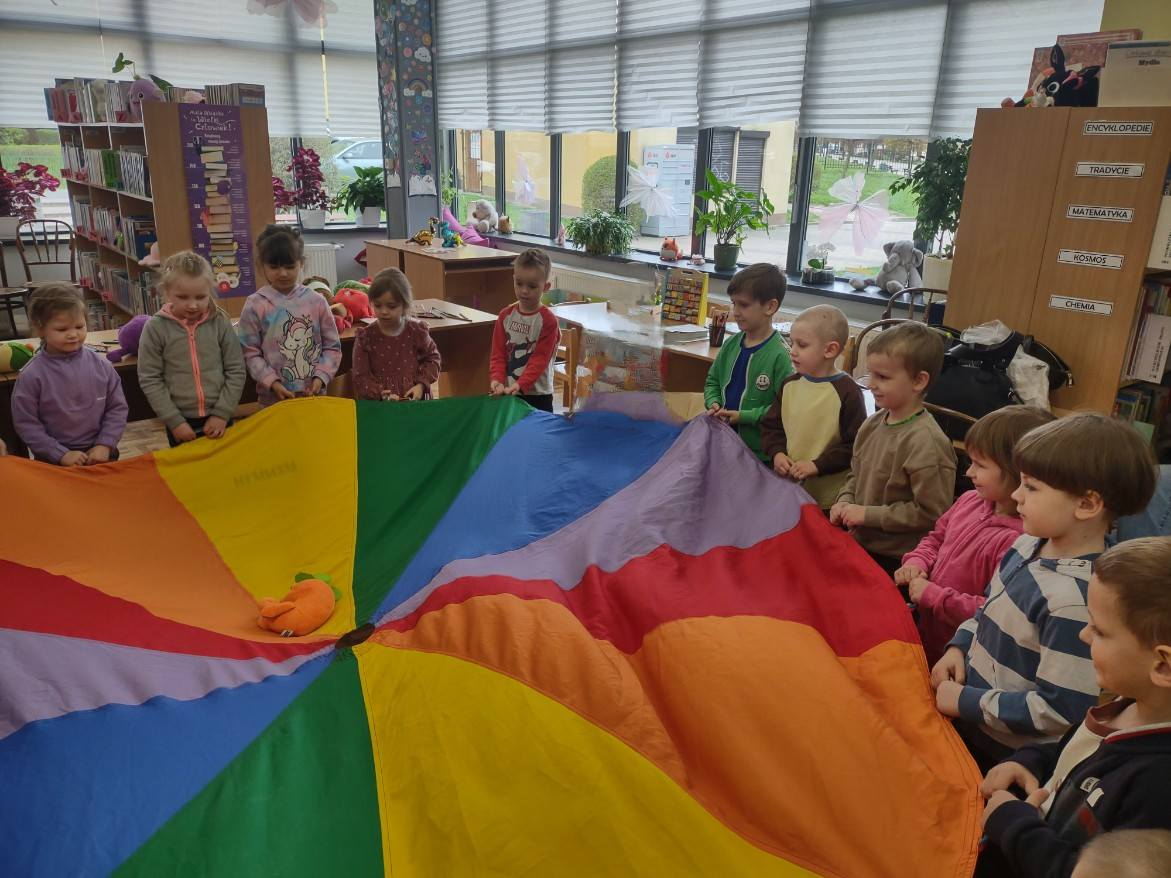 Grupa "Słoneczka" wybrała się na wyjątkową wizytę do biblioteki. Na początku spotkania pani bibliotekarka oprowadziła przedszkolaki po bibliotece, pokazując, gdzie znajdują się książki dla dzieci oraz przypomniała, że należy o nie dbać i szanować. Następnie odbyły się zajęcia tematyczne dotyczące zdrowego odżywiania. Przedszkolaki wysłuchały bajki, która podsumowała temat zdrowego stylu życia.