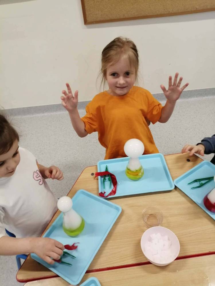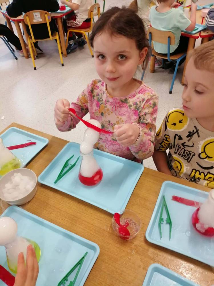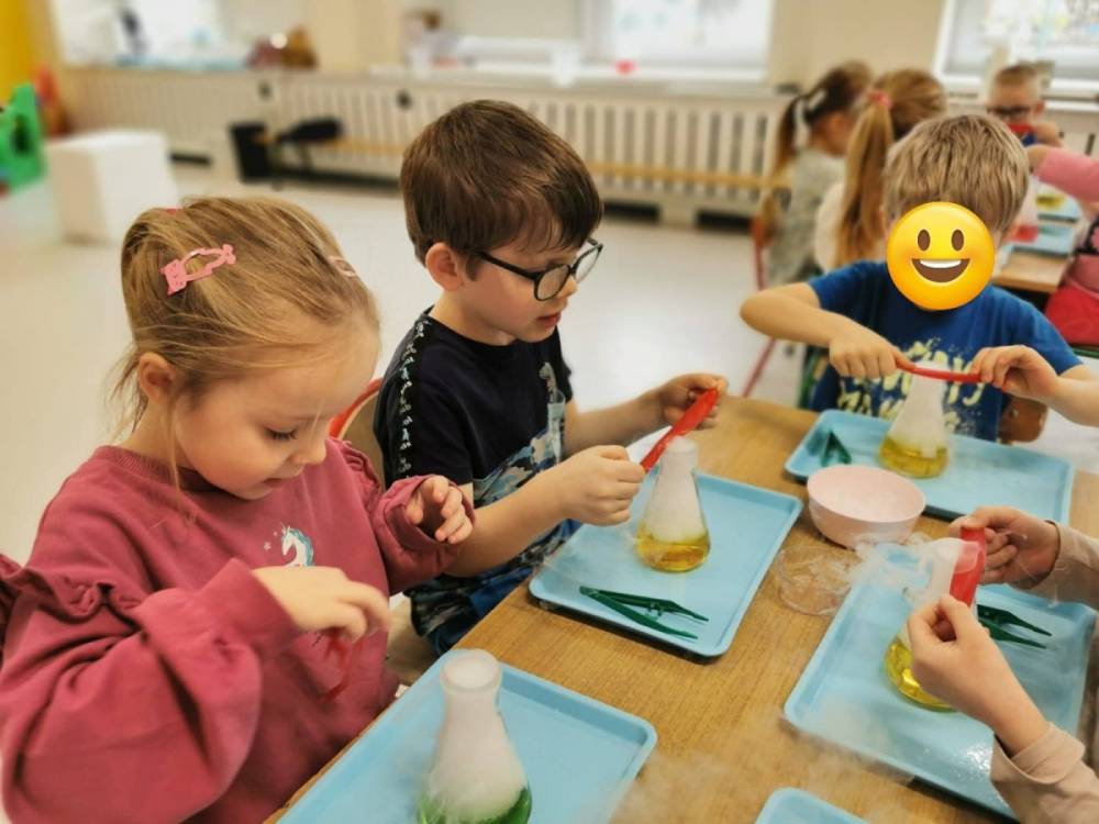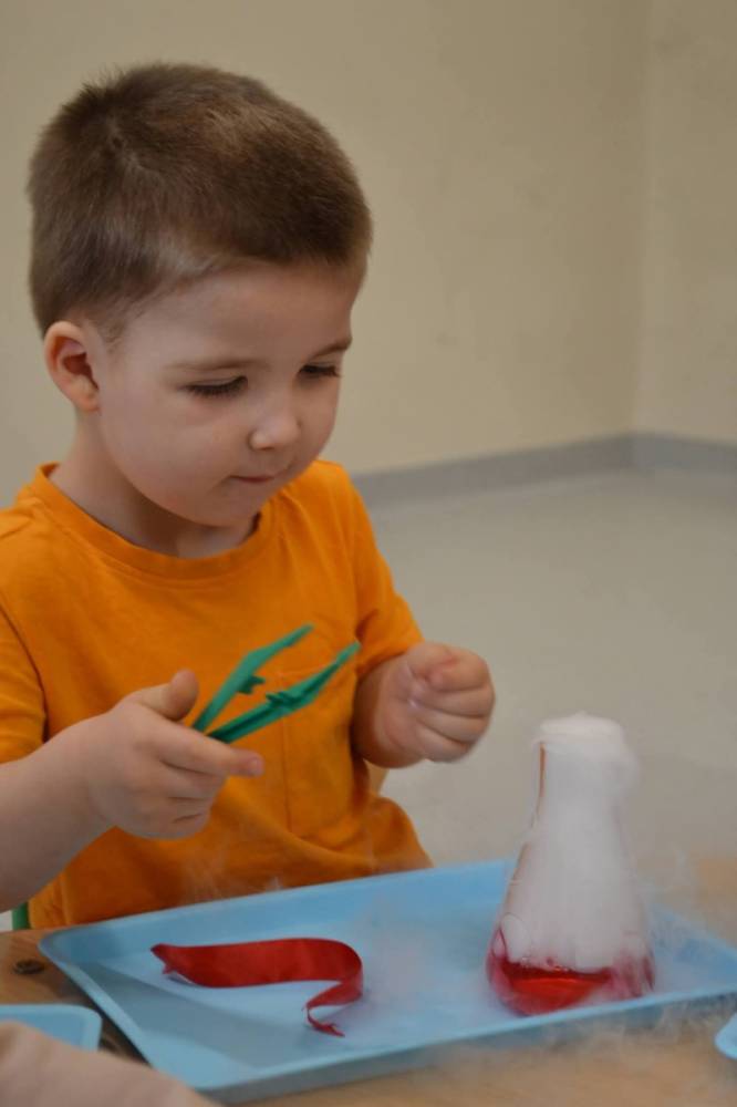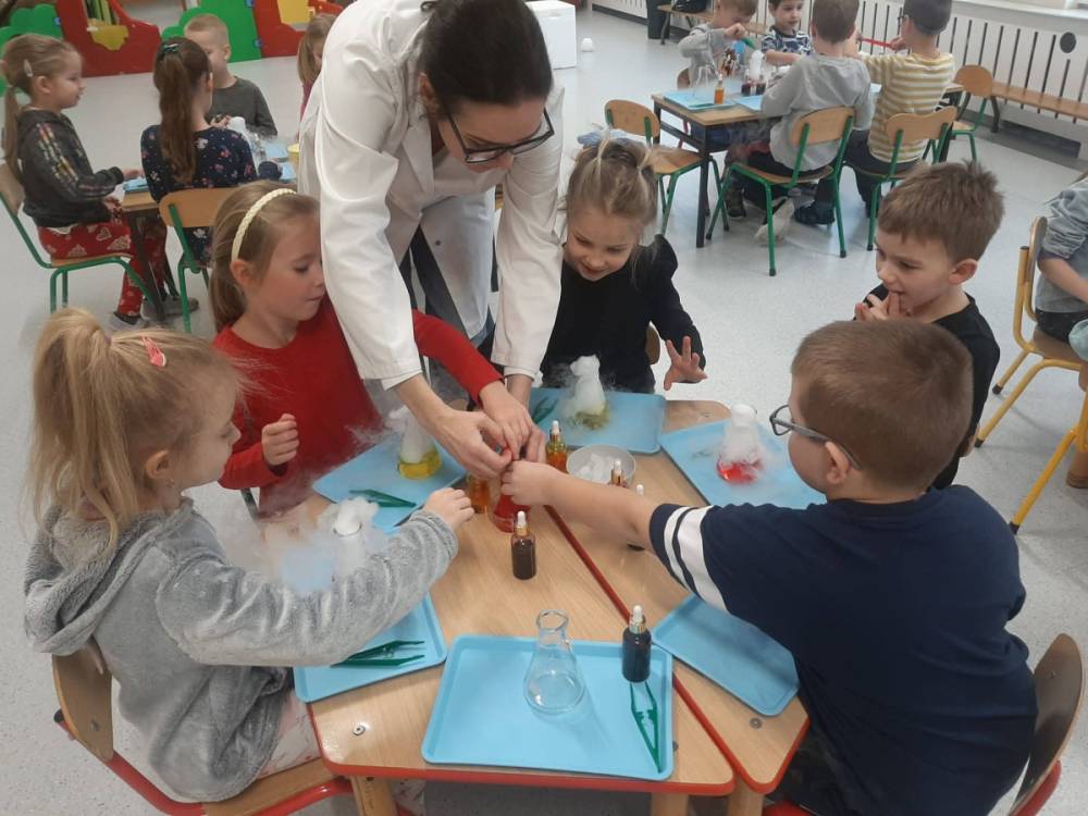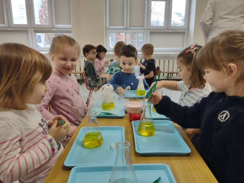 Nasze przedszkolaki przeniosły się do prawdziwej Krainy Nietypowego Lodu. Suchy lód w roli głównej, „dymiące” eksperymenty, znikająca materia i nauka, która wyglądała jak magia… a wszystko to przy akompaniamencie dziecięcych okrzyków zachwytu . Było mnóstwo radości, szeroko otwarte oczy i efekt WOW, który zostaje w pamięci na długo. Bo kiedy dzieci uczą się przez doświadczenie, nauka staje się fascynującą przygodą.