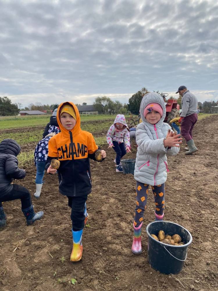 Jeździły konno i bryczką, karmiły i oglądały zwierzęta gospodarskie, spacerowały po ścieżce sensorycznej, poznawały warzywa rosnące na polach, a nawet uczestniczyły w wykopkach!